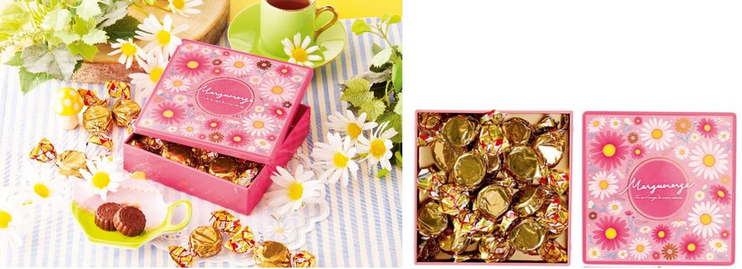 ■特長:金色の包装紙に包まれたミルクチョコレート。厳選された原料を用いてモロゾフ伝統の技から生まれた、こだわりの味をじっくりお楽しみいただけます。可憐なマーガレットのかわいらしい缶は小物入れとしても使用可能。プレゼントや自分へのご褒美にもおすすめです。