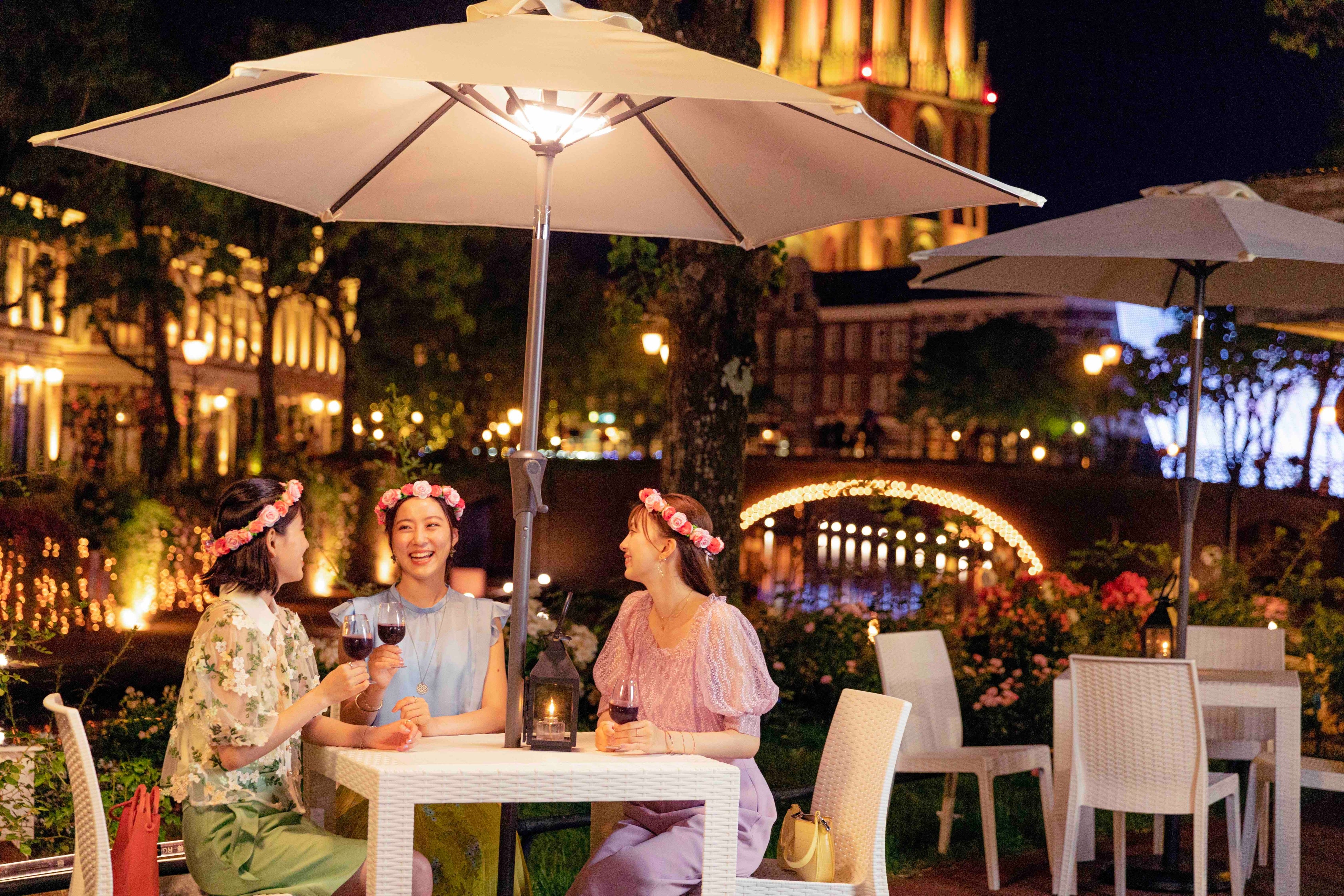 ハウステンボスでは、初夏の花々を楽しめるイベントを続けて開催。2000品種100万本の「バラ祭」では、色とりどりのバラが場内を彩ります。絶景の中で、日常では感じられない、とても優雅なひと時を過ごすことが出来るのは5月だけ。また、「初夏のワイン祭」を同時開催し、ヨーロッパの街並みに咲くバラと一緒にワインを楽しむ事ができます。今年はバイオリンなどの生演奏も登場し、さらに優雅な空間に。 5月はハウステンボスだけのワンランク上の極上体験が待っています。