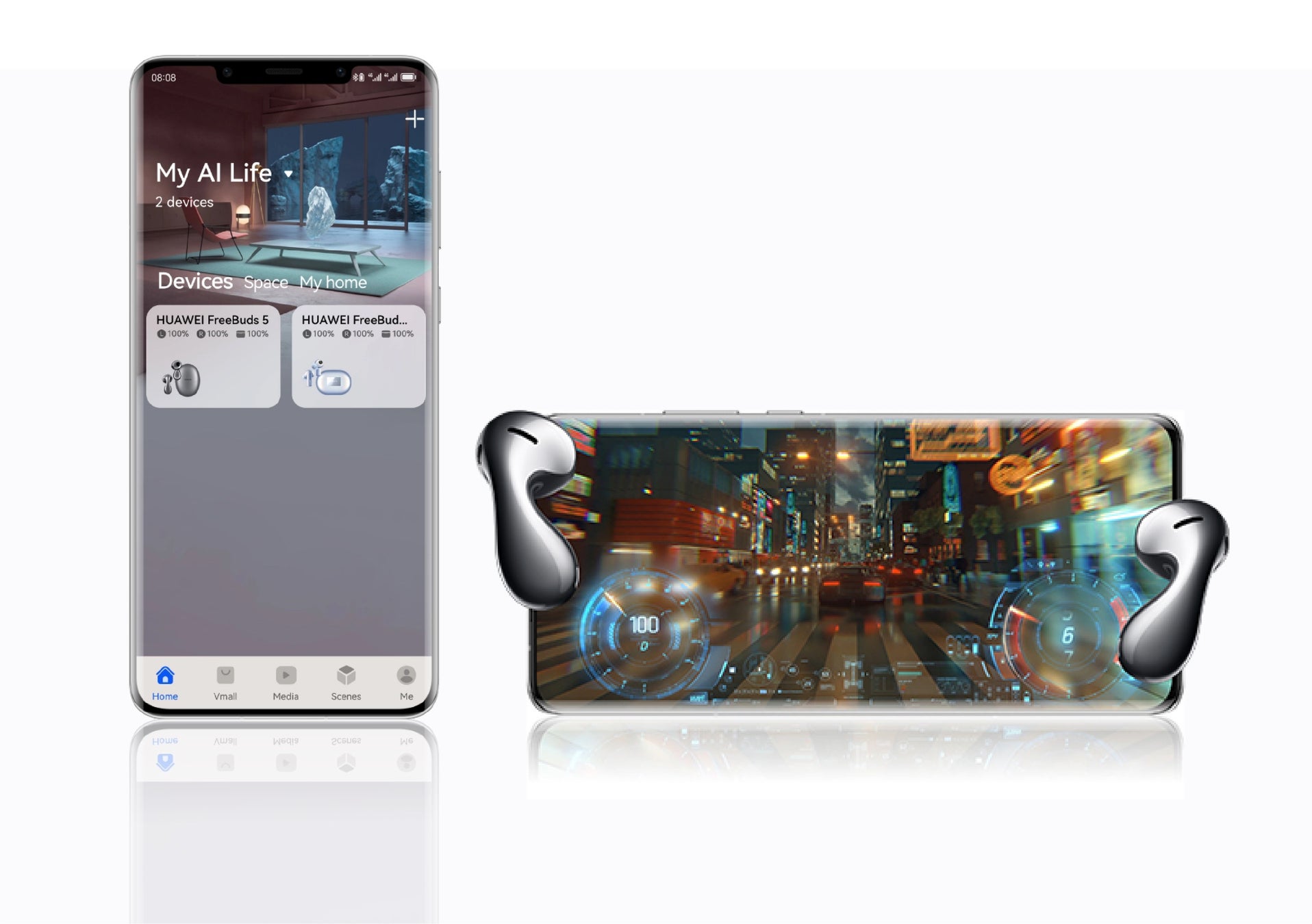 HUAWEI AI Lifeアプリを使えば、好みに合わせてイコライザーモードを調整することも可能です。デフォルト/低音強調/高音強調/音声の4つのモードをお選びいただける以外に、10段階のカスタマイズEQを設定できるため、いつでも自分好みの音を楽しむことができます。その他アプリからはタッチ操作のカスタマイズや、イヤホンを探す、ノイズキャンセリングモード変更、低オーディオ遅延モードなど各種機能を設定可能。『HUAWEI FreeBuds 5』と併せてご利用いただくことで、更に便利に音楽を楽しんで頂けます。尚、HUAWEI AI LifeアプリはiOS、Androidどちらにも対応しています。