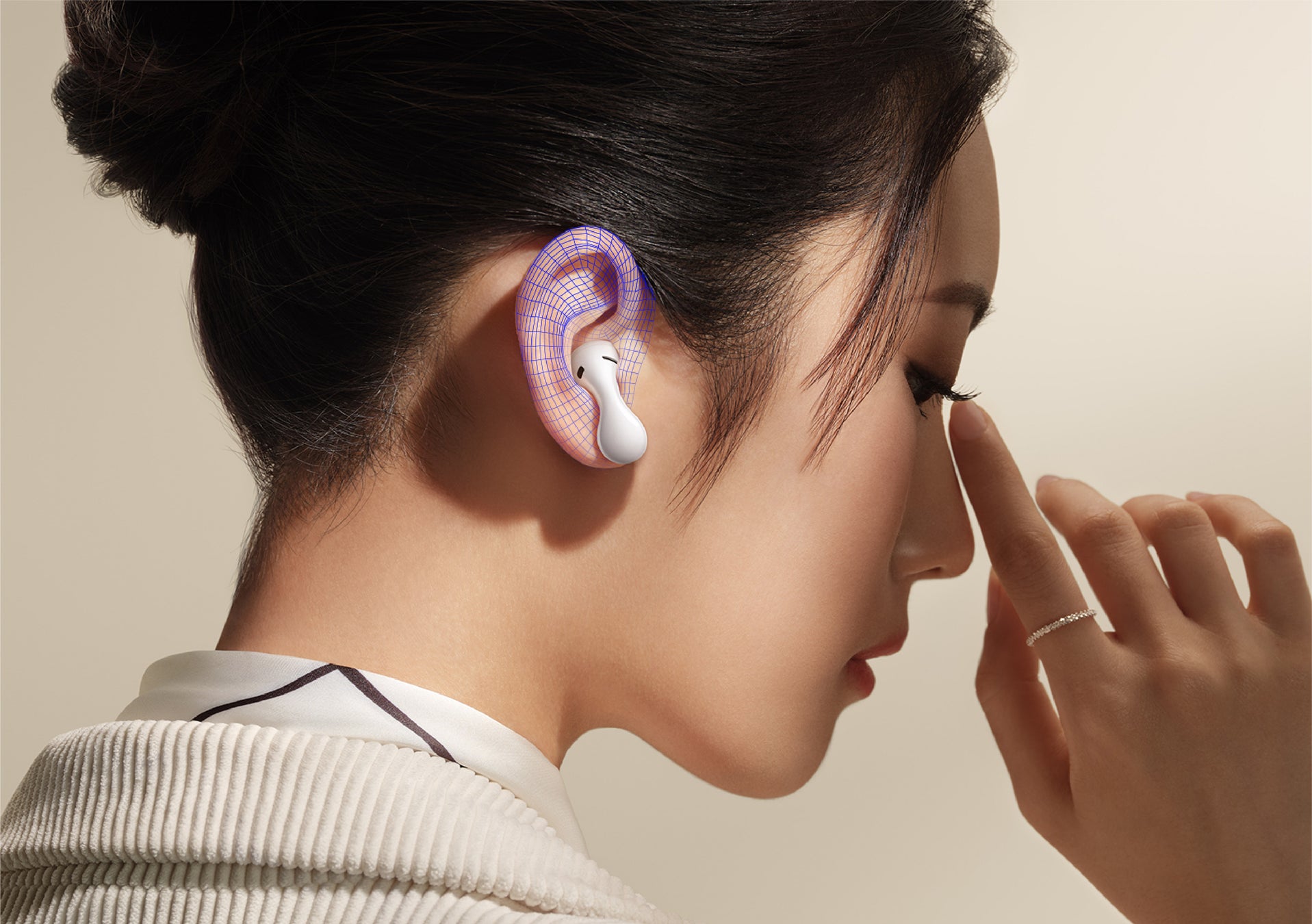 『HUAWEI FreeBuds 5』の特殊な形状は、究極の快適性を目指し人間工学に基づいて設計されています。数万回にも及ぶシュミレーションを経てたどり着いたデザインは、美しい見た目だけでなく、耳にぴたりと馴染む快適な装着感も特徴です。開放的なインナーイヤー型を採用しているため着用時の圧迫感も少なく、長時間の使用でもストレスフリーにご利用頂けます。更に付属のイヤーチップを使えばフィット感の調整も可能。どなたでも快適にご利用いただけるよう工夫をこらしています。