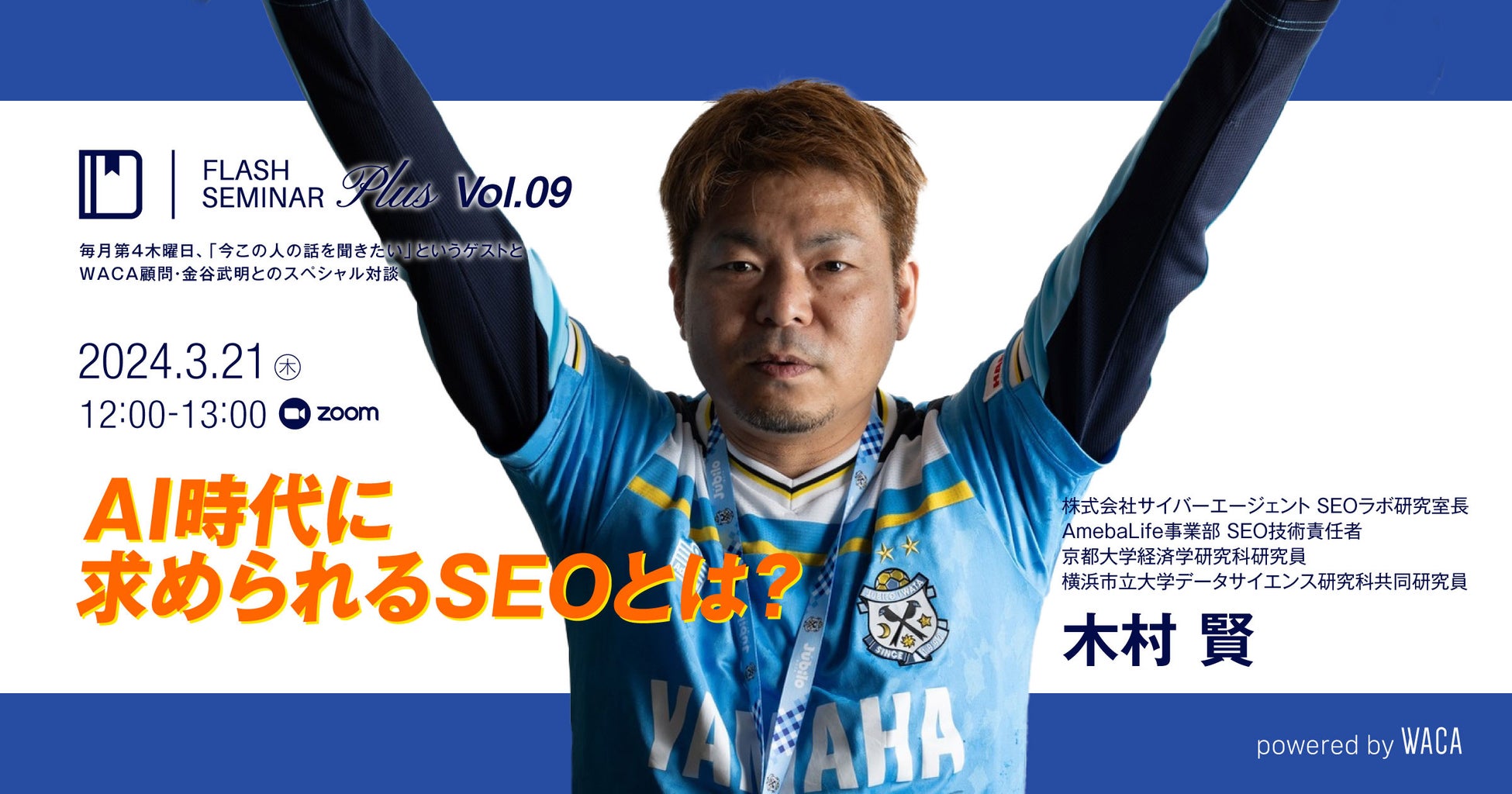 2024/3/21(木)12:00〜13:00 FlashセミナーPLUS Vol.09 AI時代に求められるSEOとは?