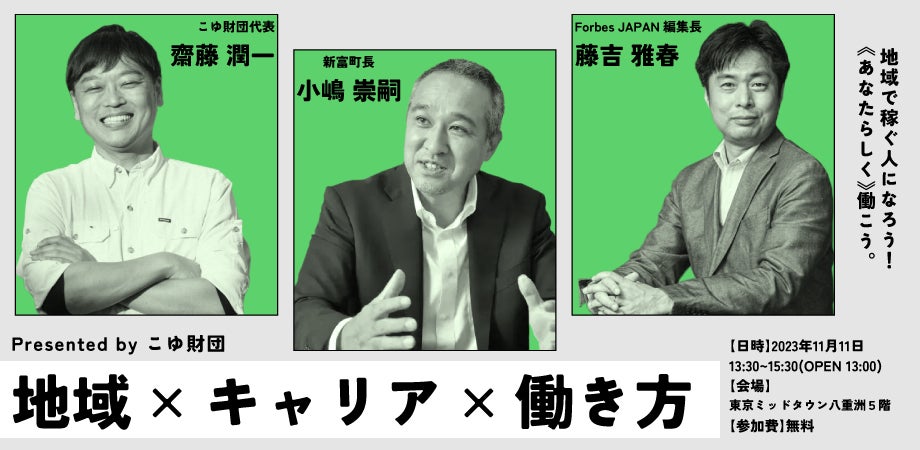 今回は、宮崎県新富町小嶋町長・グローバルビジネス誌Forbes JAPAN藤吉編集長をゲストに迎え「地域×起業」「地域おこし協力隊×キャリア 」「地域移住×働き方」についてスペシャル対談を行なって頂きます。
