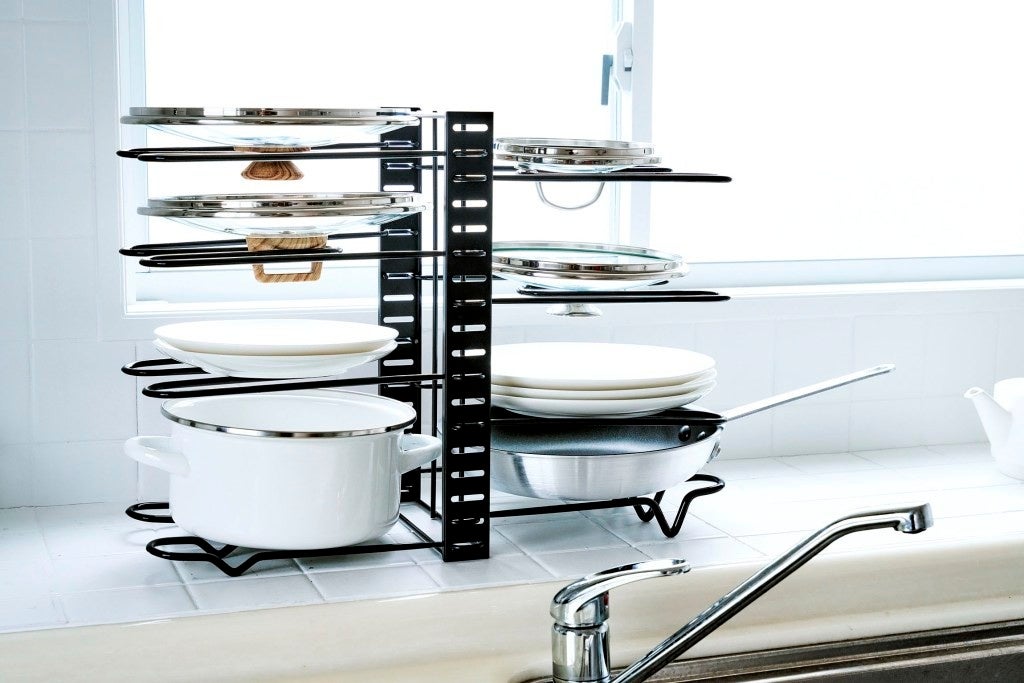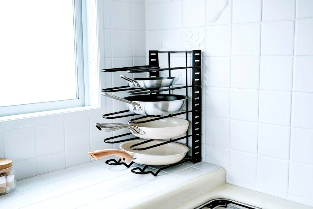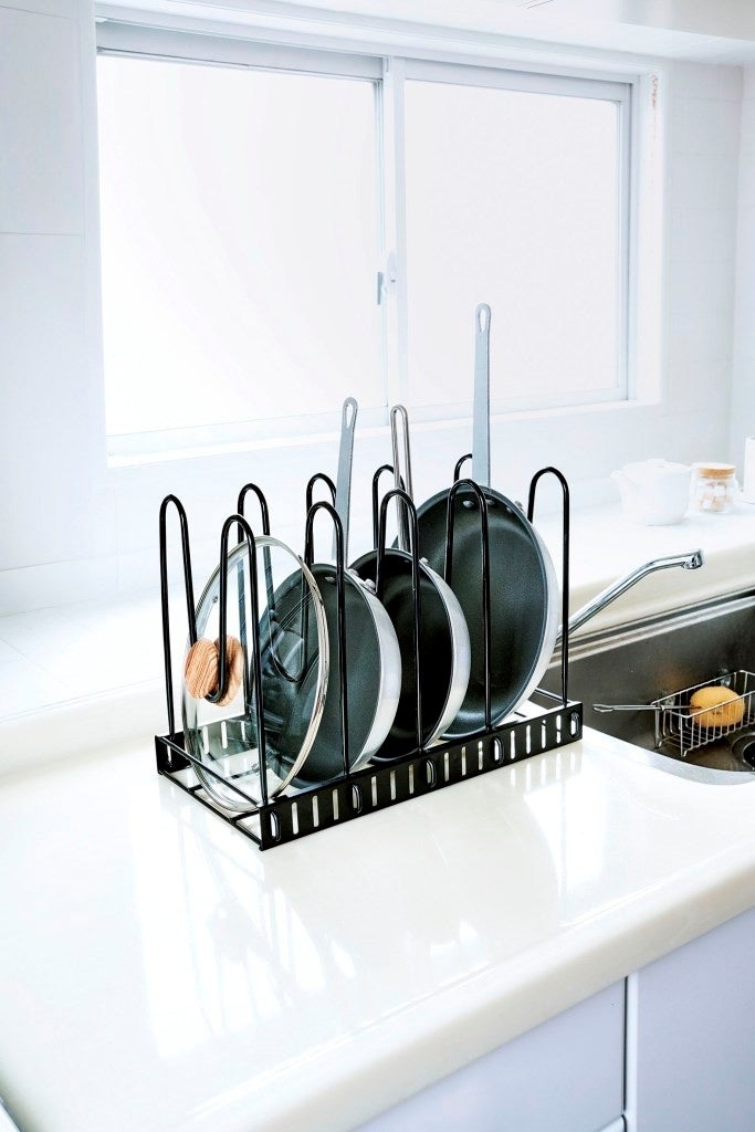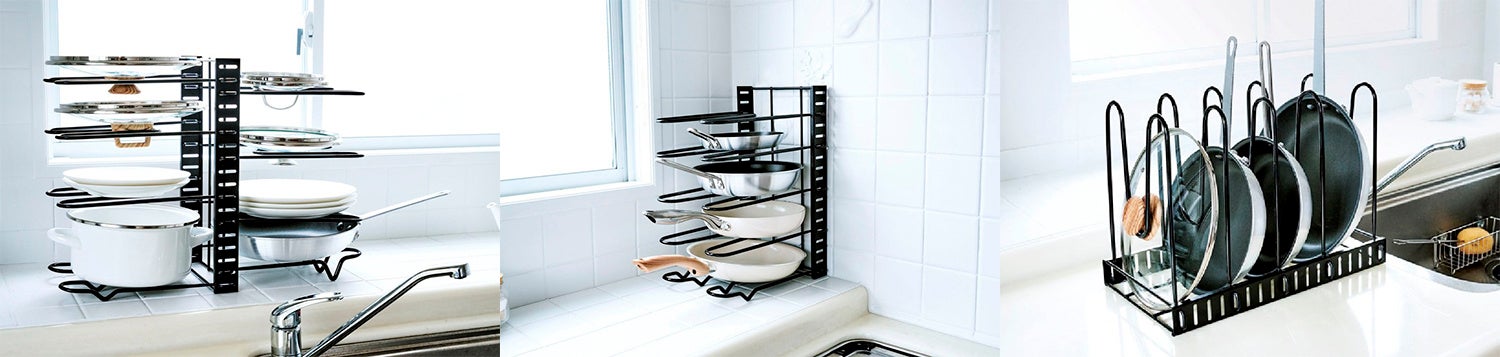 置き方次第で、収納が変わる。「すべりにくい3WAYフライパンスタンド」を3月2日より発売