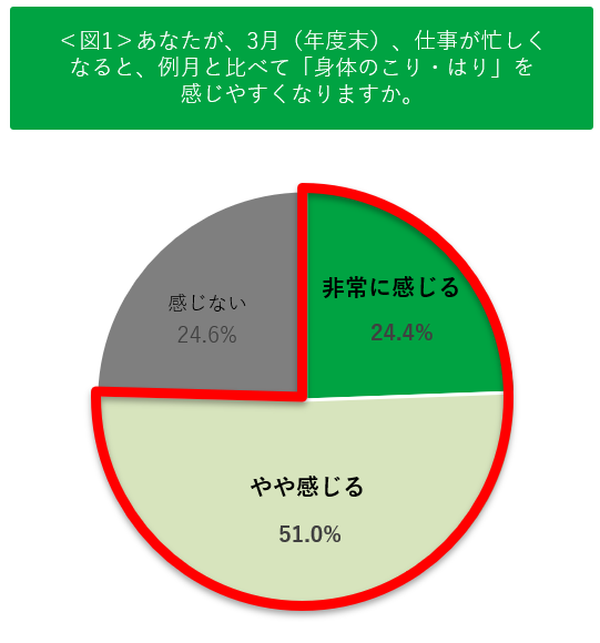 ✓3月(年度末)、仕事が忙しくなると例月と比べて「身体のこり・はり」を感じやすくなると