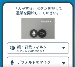 入室前画面が立ち上がるので、お顔や背景の設定を選び「入室」を選択します。