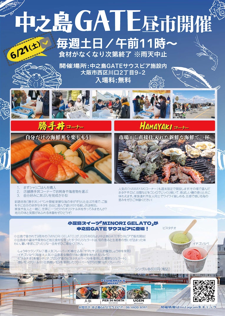 大阪・中之島の新スポット「中之島GATEサウスピア」施設内」にて、新鮮な海の幸を楽しめる「中之島GATE昼市」を2025年6月21日(土)より毎週土・日曜日に開催いたします。