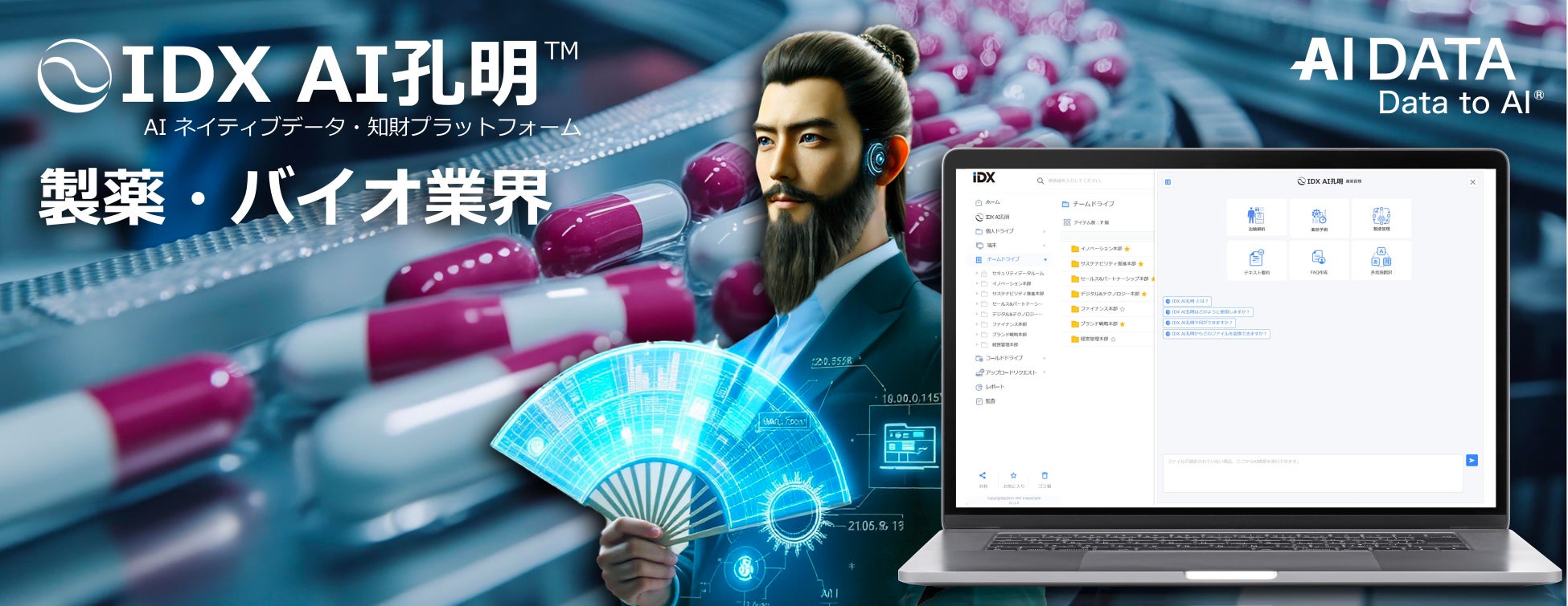 企業データとAIの利活用カンパニー、AIデータ株式会社(本社:東京都港区、代表取締役社長 佐々木隆仁 以下AIデータ社)は、製薬・バイオ業界の研究開発(R&D)部門向けに、生成AI「AI孔明™」を活用した特許・技術データ解析ソリューション の提供を開始しました。
