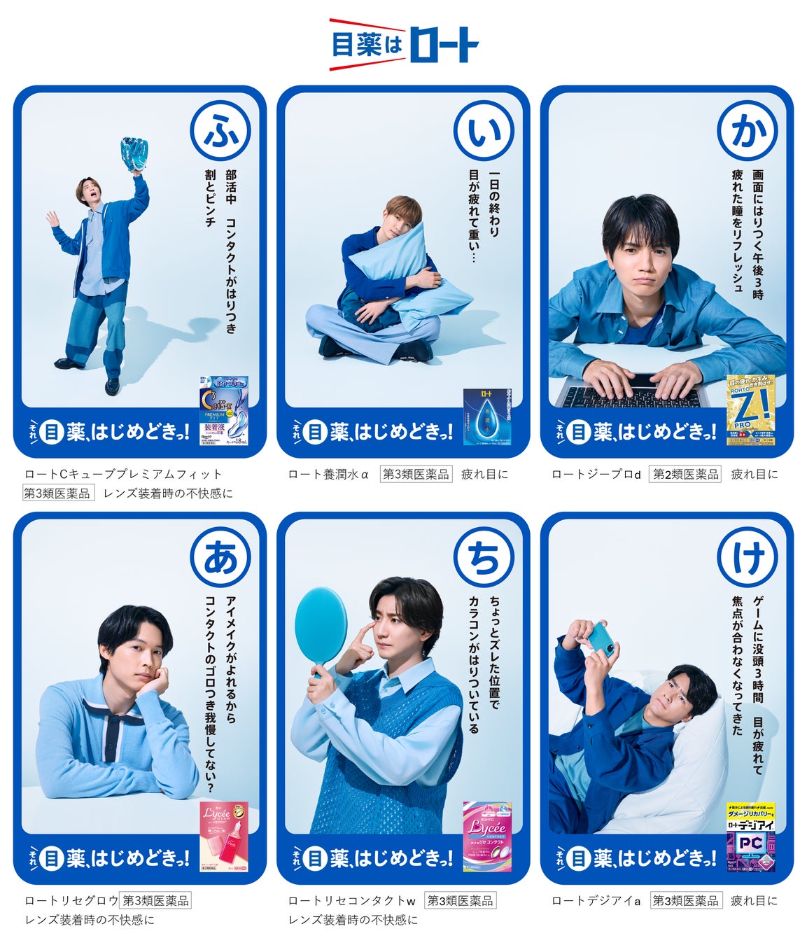 ロート製薬株式会社(本社:大阪市、社長:瀬木英俊)は、ロート製薬の目薬アンバサダー「SixTONES」とともに、2025年10月30日より目薬の啓発を行うキャンペーンを実施します。2023年の開始から3年目となる2025年のキャンペーンでは、「画面にはりつく午後3時 疲れた瞳をリフレッシュ」「部活中 コンタクトがはりつき 割とピンチ」など、毎日の暮らしにひそむ目の不快感やトラブルを「目薬はじめどきっ!カルタ」として発信。カルタの言葉にあわせてSixTONESのメンバーがコミカルに演じる絵柄にも注目です。