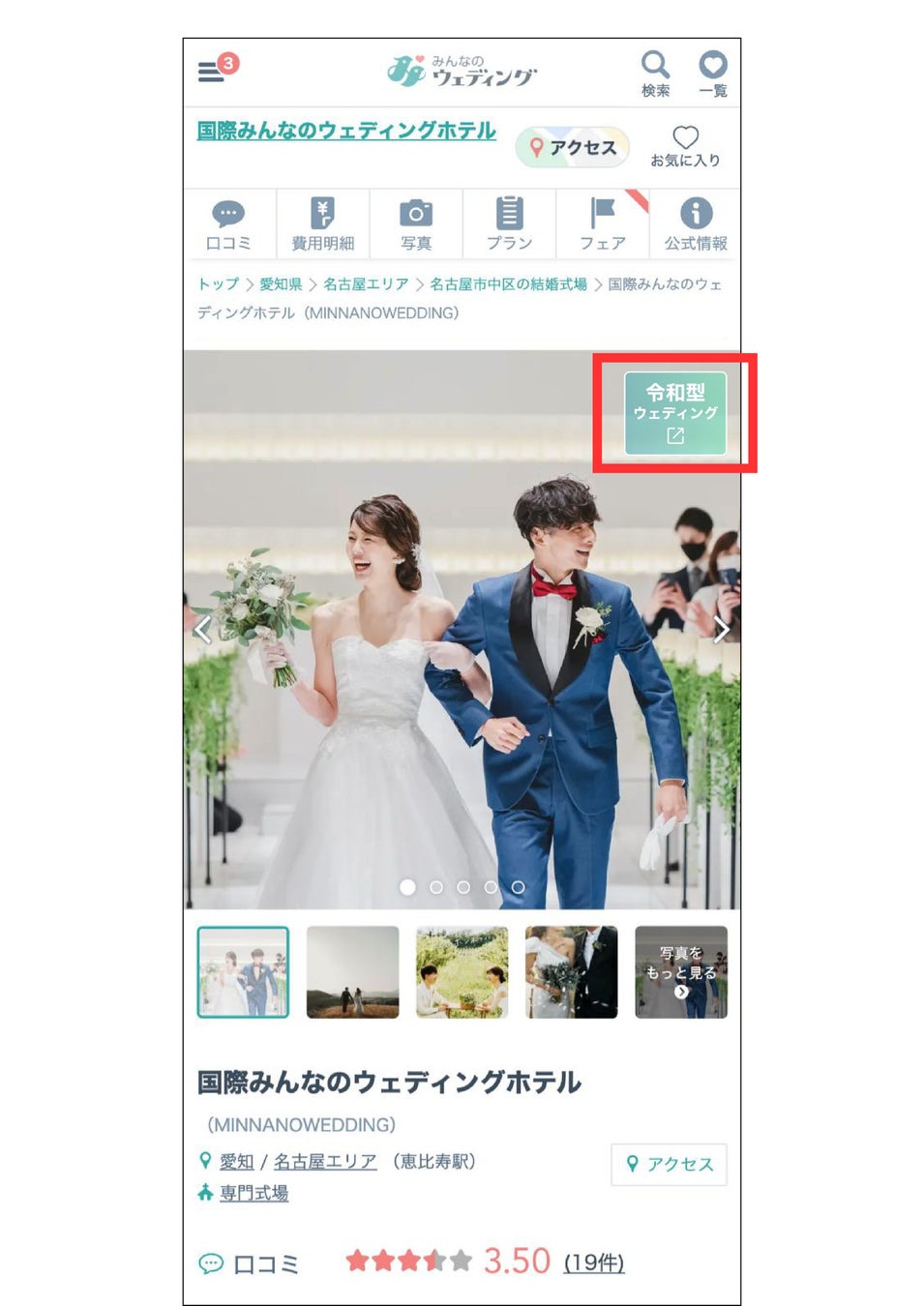 「みんなのウェディング」の式場検索で「令和型ウェディングパーティ」に対応する認定式場がひと目でわかるように