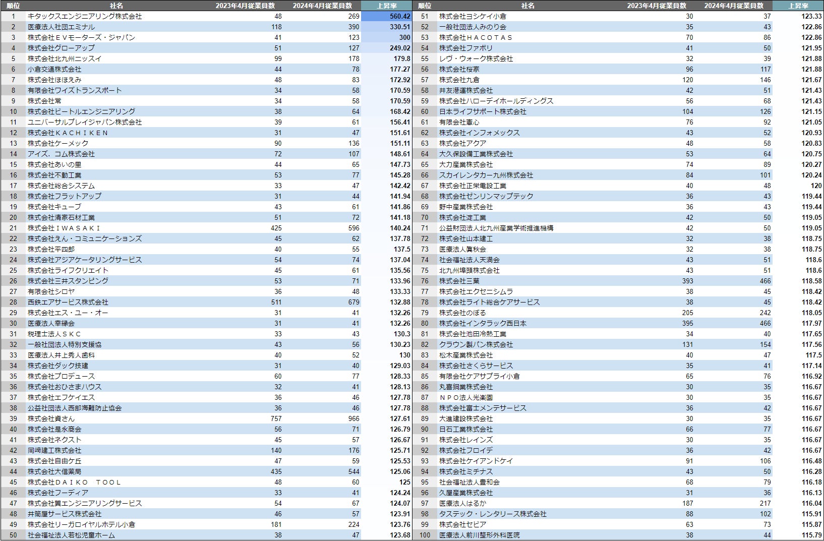 北九州市×成長企業ランキングTOP100について