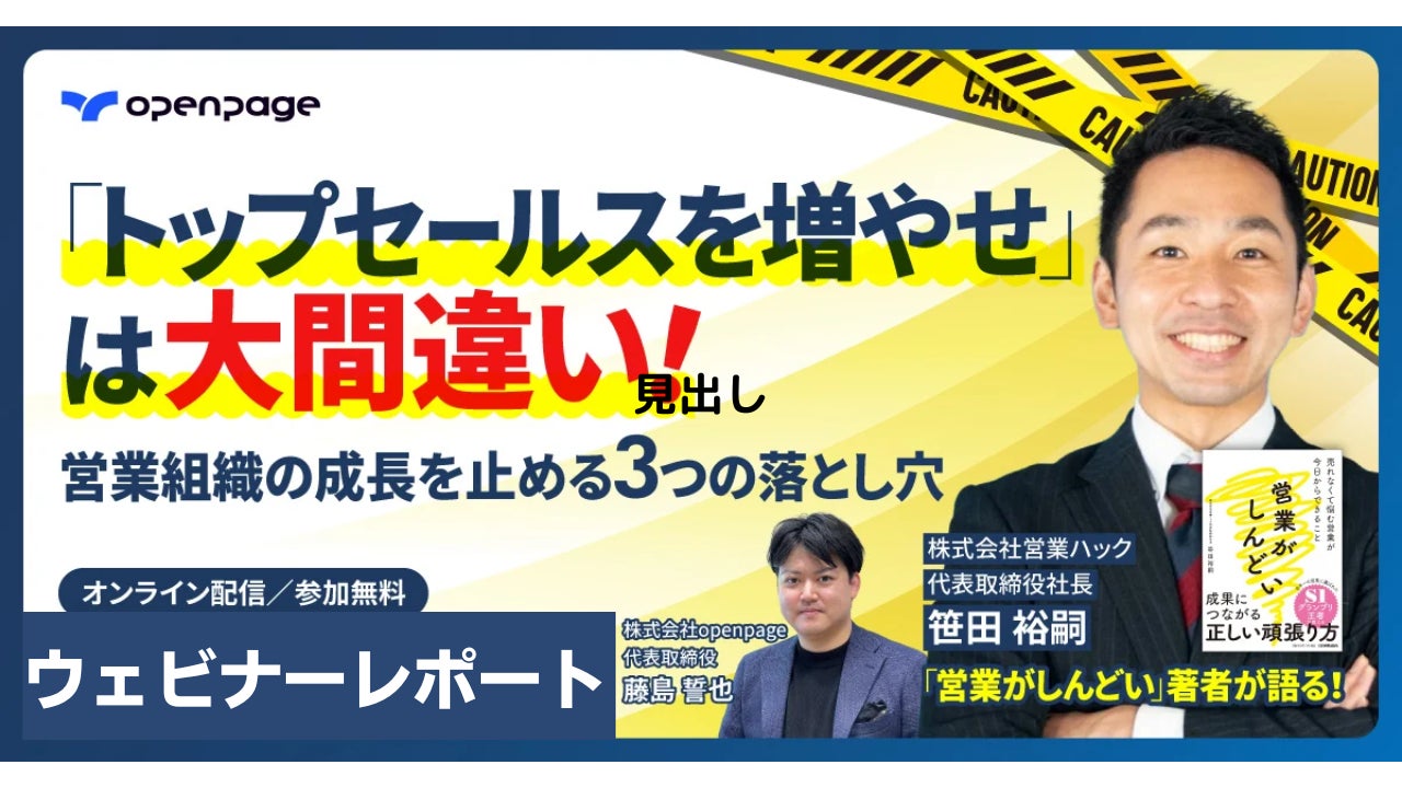 株式会社openpage(本社: 東京都新宿区・代表:藤島 誓也)と株式会社営業ハック(本社:東京都豊島区・代表:笹田裕嗣)が共催ウェビナーを開催いたしました。