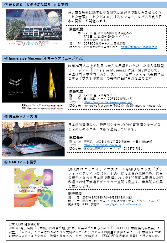 ECO EDO 日本橋 2023~めぐり、つなげる、江戸の知恵~「古き新し、夏めぐり」をテーマに、日本橋のECOな涼を楽しめるイベントを展開