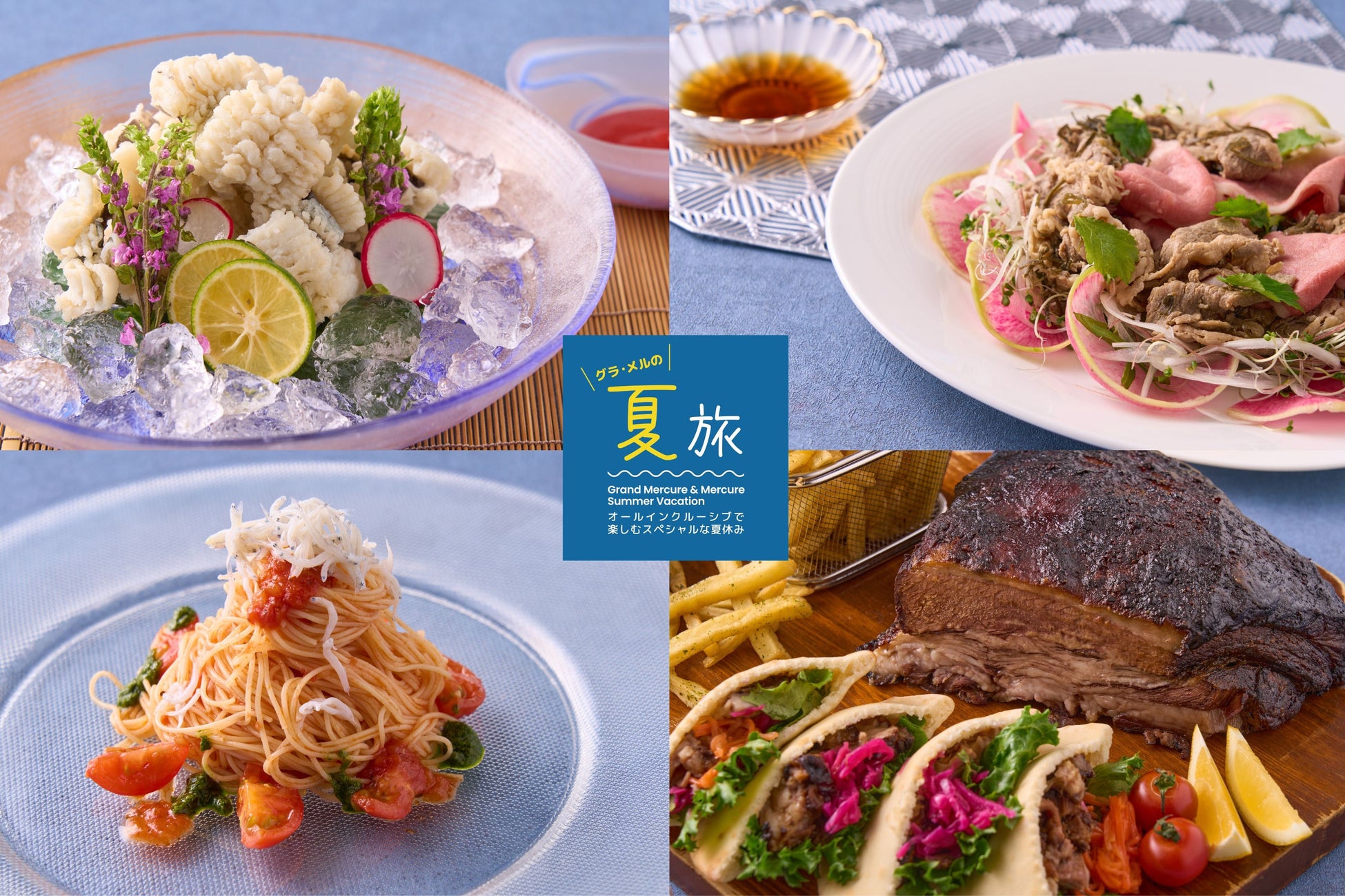 北海道から沖縄まで、22のリゾートホテルを展開する「グランドメルキュール」「メルキュール」。リブランド2年目となる2025年の夏は「グラ・メルの夏旅」と題し、お子様から大人まで楽しめる夏らしい企画を展開しお客様をお迎えします。夏ならではのお楽しみは自慢のビュッフェでも。各ホテルが通常メニューにプラスして夏らしさ、その土地らしさを感じる期間限定メニューをご用意し、食事でも「特別な想い出」をお作りいただけるよう、お客様をおもてなしいたします。本リリースでは一部のメニューをご紹介します。