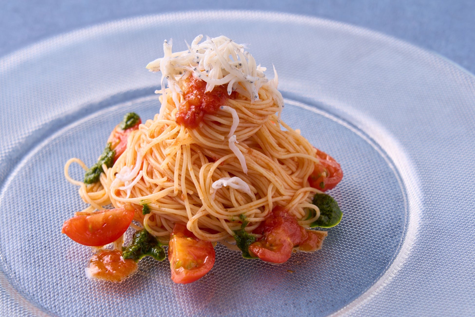 夏にぴったりの冷たいパスタを提供するのは「グランドメルキュール浜名湖リゾート&スパ」。天使の髪と言われる極細のパスタ、カッペリーニにオリーブオイルで和えた程よい酸味と甘みをたっぷり感じられる地元産トマト、しらすの塩気が絡み、暑い夏にもさっぱりとお召し上がりいただけます。九条ねぎの色味が目にも鮮やかな夏の暑さを忘れさせる涼しげなメニューをどうぞ。