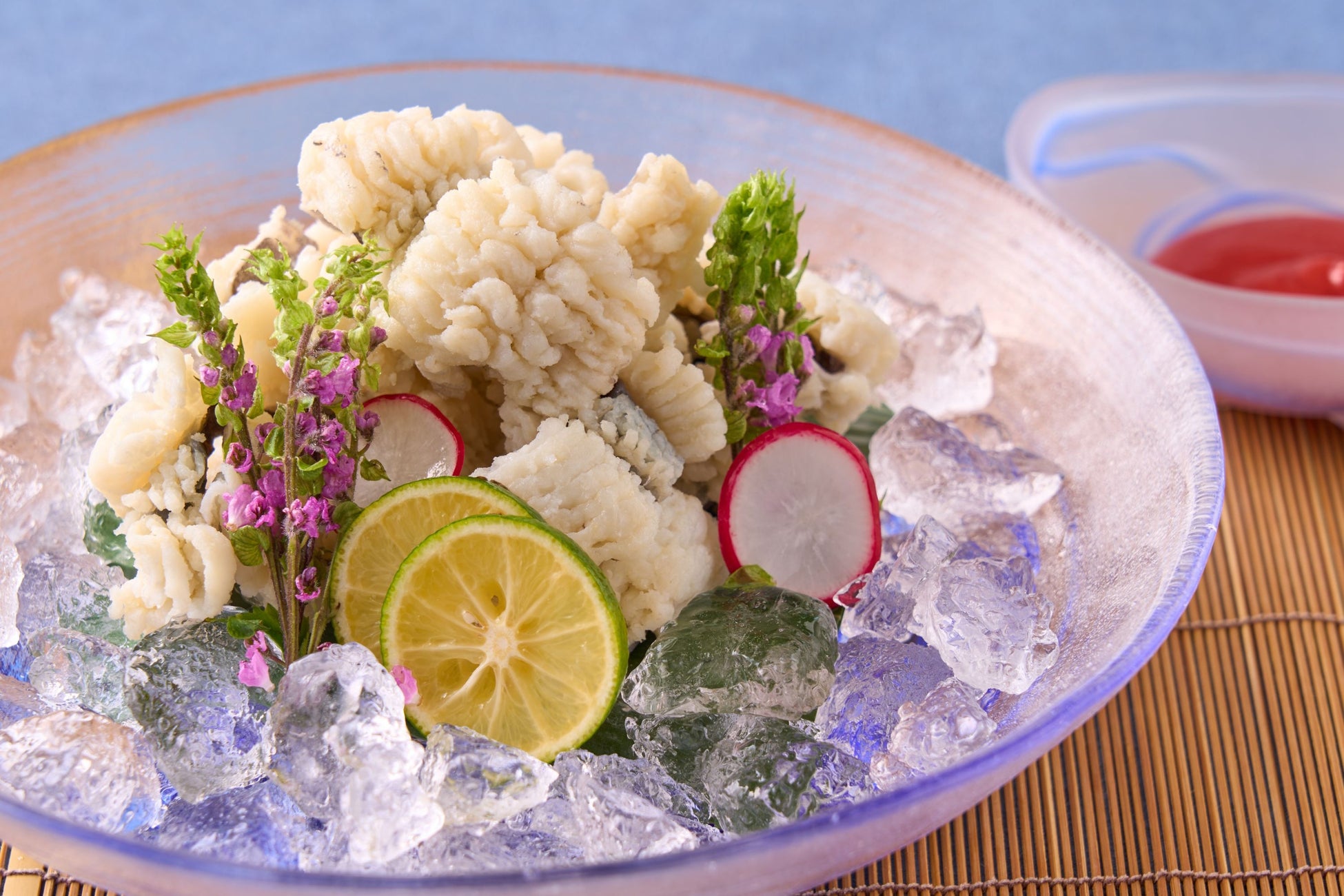 関西方面で夏の食材と言えばまずその名が挙がる「鱧(はも)」。鱧すきや天ぷらなど様々な味わいがありますが「グランドメルキュール淡路島リゾート&スパ」では「べっぴん鱧落とし」で提供いたします。丁寧に骨切りした鱧を熱湯にさっとくぐらせ、清涼感溢れる梅肉ソースでお召し上がりいただきます。淡泊でありながら味わい深い身、身と皮の間のコラーゲンなど、上質な旬の味覚をお楽しみください。