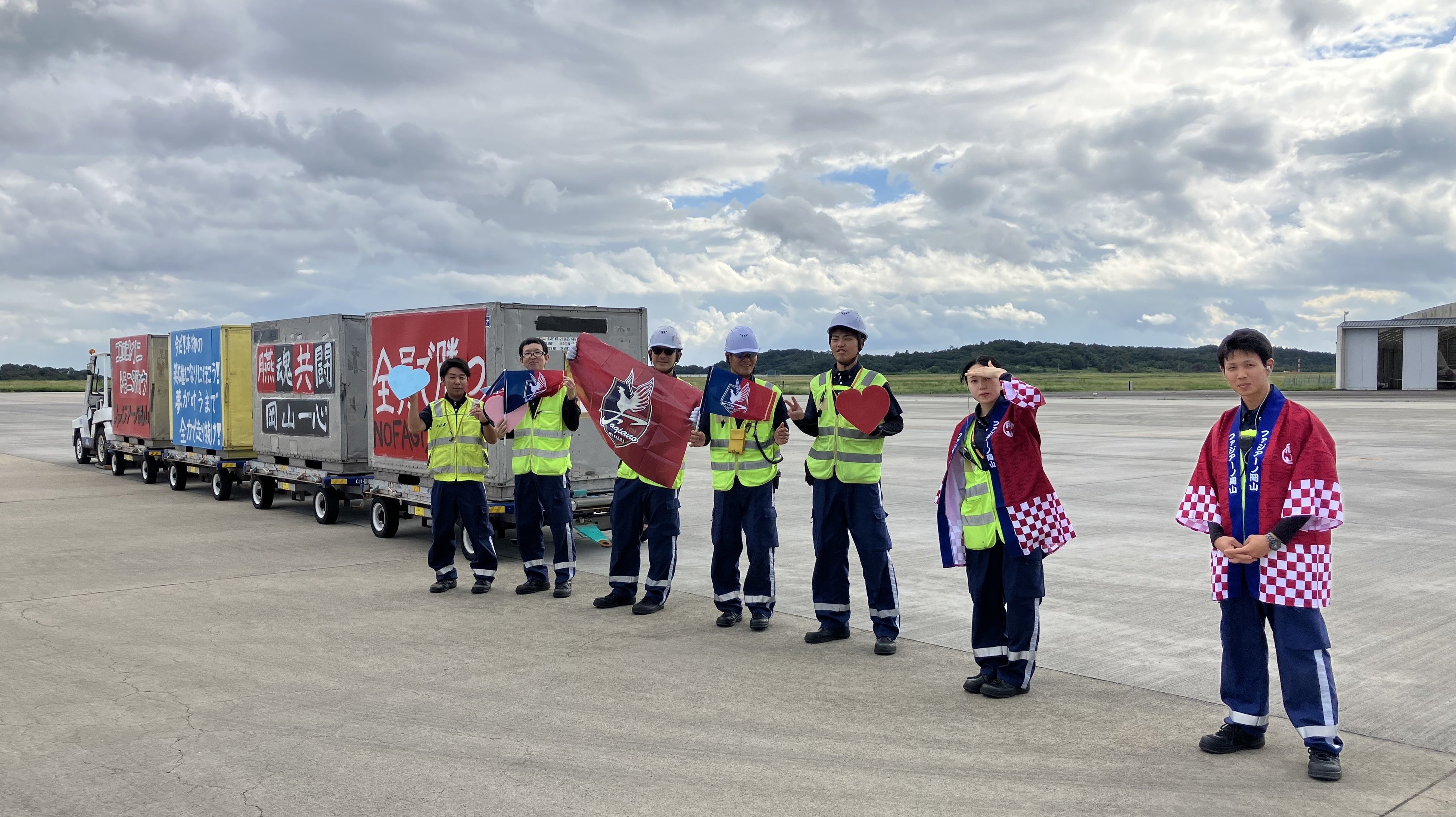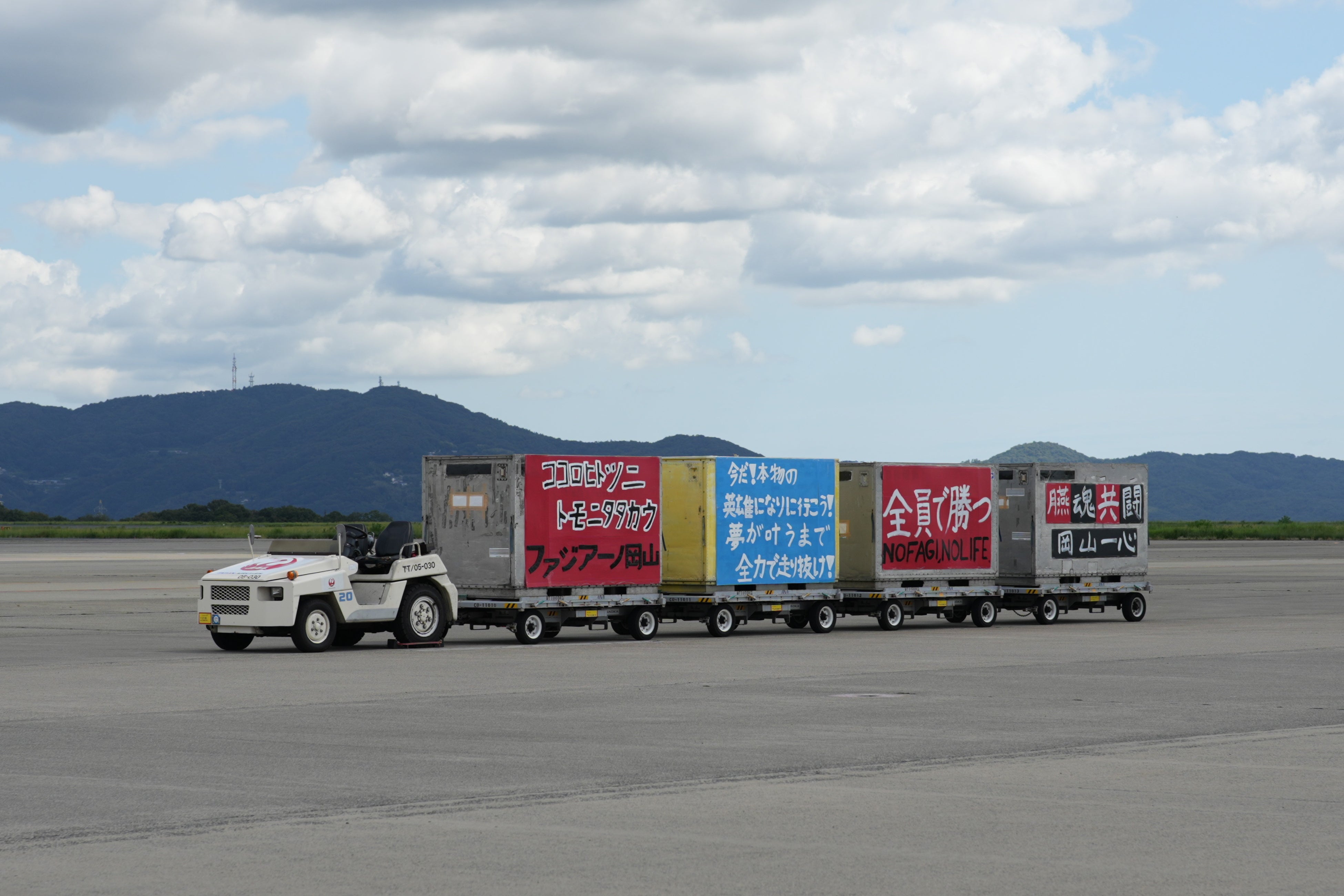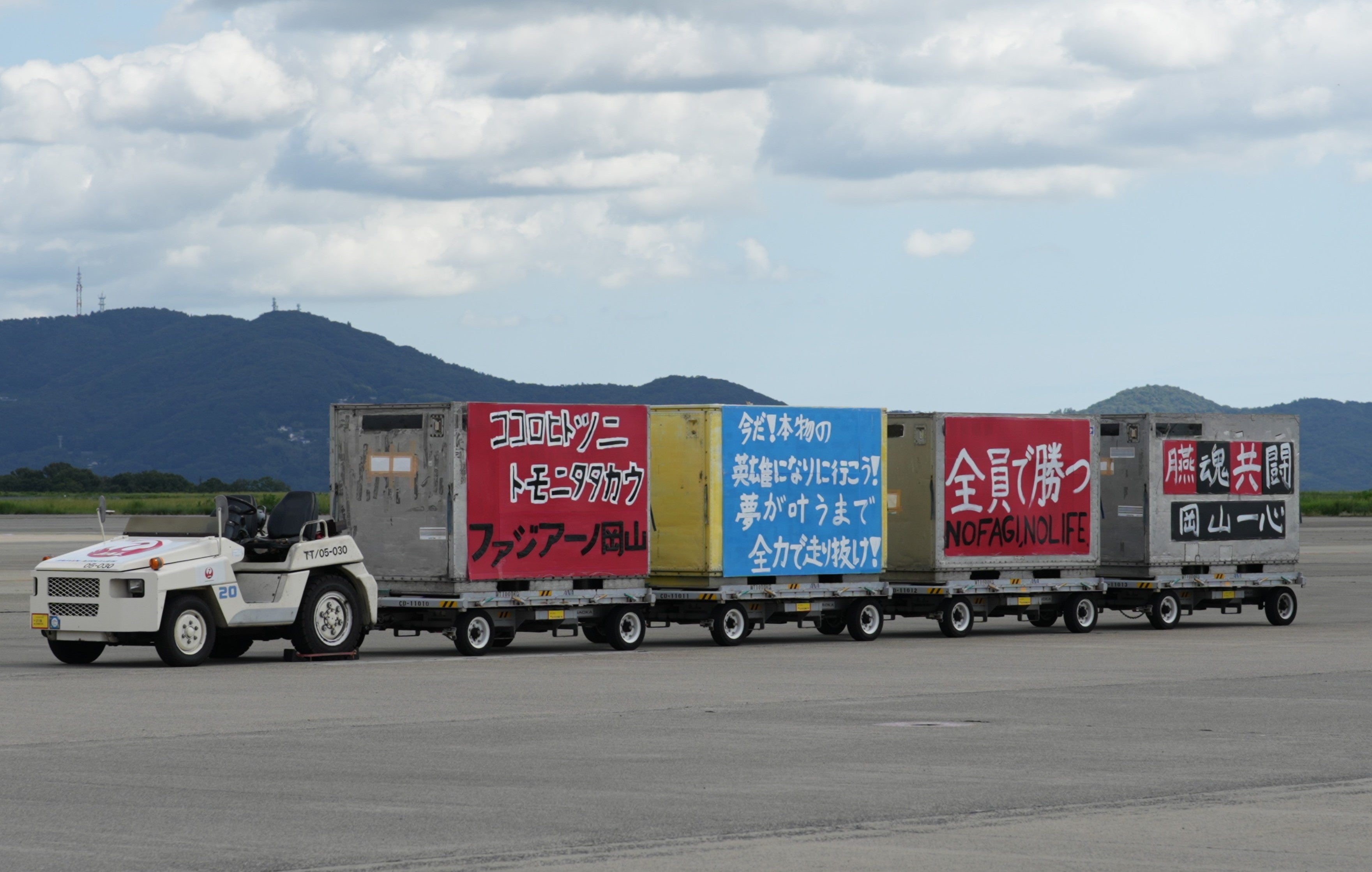 ご搭乗のお客様から見えるように、ファジアーノ岡山への応援メッセージを装飾した特別コンテナを配備します。