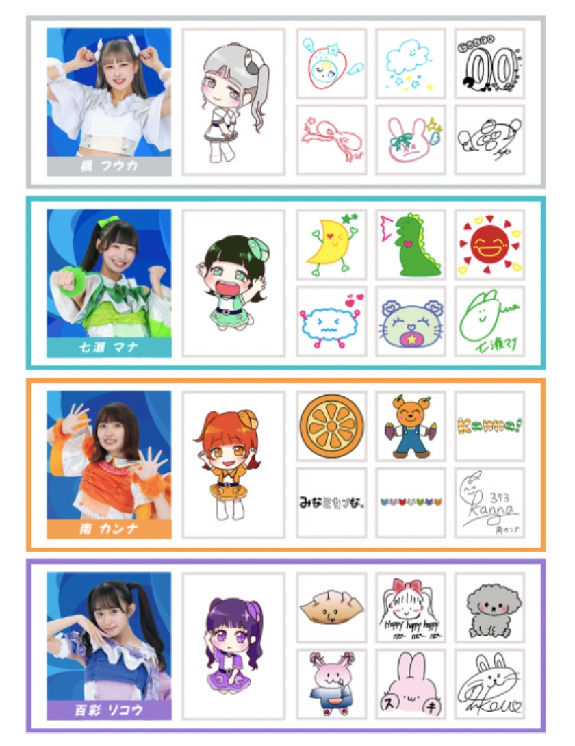 コラボ限定メンバーの手描きデザインと小田アヤネさん描き下ろしSDキャラを