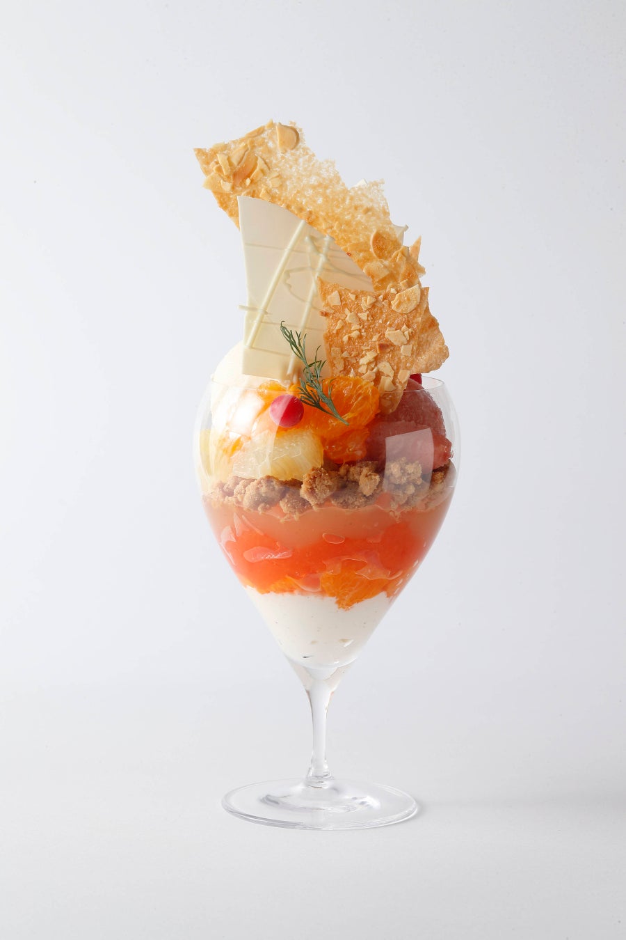 【エンポリオ アルマーニ カフェ 心斎橋パルコ店】初夏の訪れを感じる爽やかな5月のパフェ「柑橘とアーモンド、アマレットのパフェ」が登場