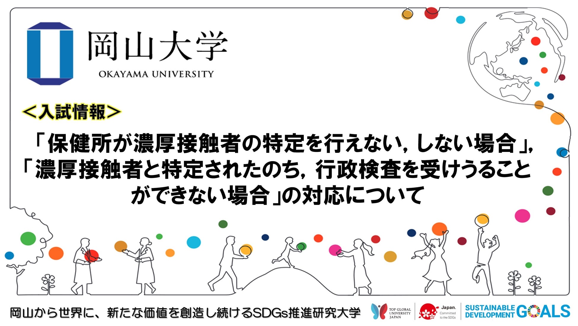 【岡山大学】「保健所が濃厚接触者の特定を行えない,しない場合」,「濃厚接触者と特定されたのち,行政検査を受けうることができない場合」の対応について