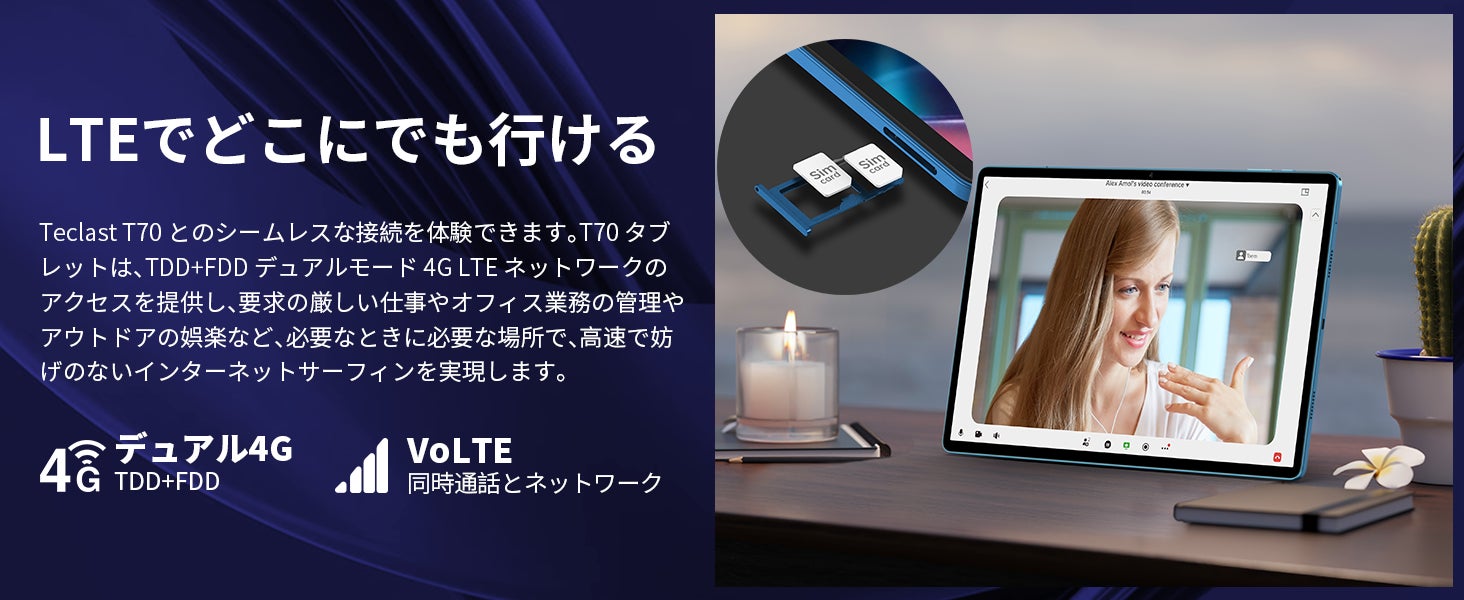 Teclast T70とのシームレスな接続を体験できます。TDD+FDDデュアルモード4G LTEネットワークのアクセスを提供し、要求の厳しい仕事やオフィス業務の管理やアウトドアの娯楽など、必要なときに必要な場所で、高速で妨げのないインターネットサーフィンを実現します。