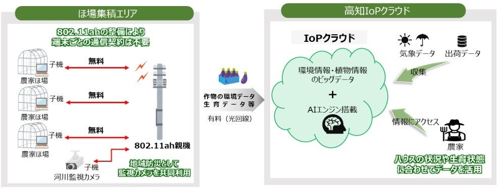 高知県(県知事:濵田 省司)と、高知電子計算センター(本社:高知県高知市、代表取締役社長:中越 吉彦)、ぷらっとホーム(本社:東京都千代田区、代表取締役社長:鈴木 友康)、高知システムズ(本社:高知県高知市、代表取締役社長:彼末 安史)、NTTアグリテクノロジー(本社:東京都新宿区、代表取締役社長:酒井 大雅)の4社は、高知県IoPクラウド※1の更なる普及促進に向け、920MHz帯を利用する新通信規格IEEE802.11ah※2を活用したプライベートネットワーク※3の整備によりIoPプロジェクトの普及促進を図るモデル化実証を実施しています。