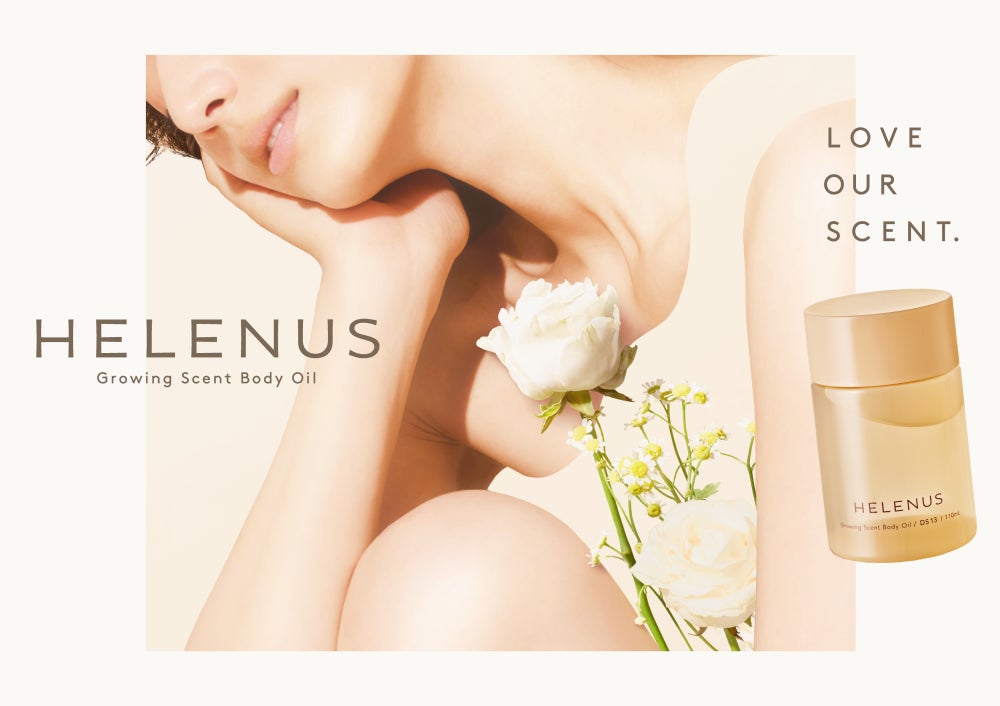 【新発売】2022年10月1日(土)肌の匂いに着目し香りの可能性を引き出す新ブランド『HELENUS(ヘレナス)』誕生。“自然ないい匂いの人”を叶える※1『ヘレナス グローイングセントボディオイル』
