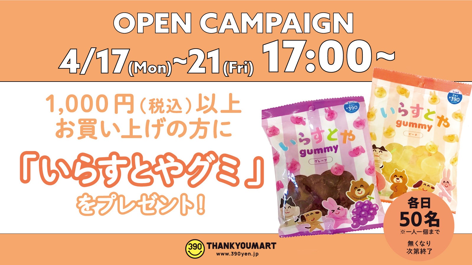 - 期間限定!グミがもらえるオープニングキャンペーンを実施