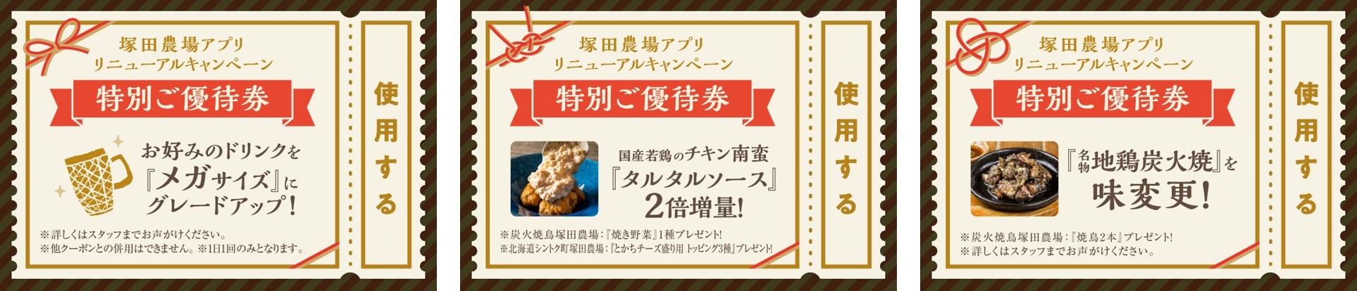 また、今回のリニューアルを前に皆様からのご愛顧に感謝し、「塚田農場公式アプリリニューアルキャンペーン」として、現在の塚田農場の名刺制度をお得に楽しめるご利用特典をご用意しました。