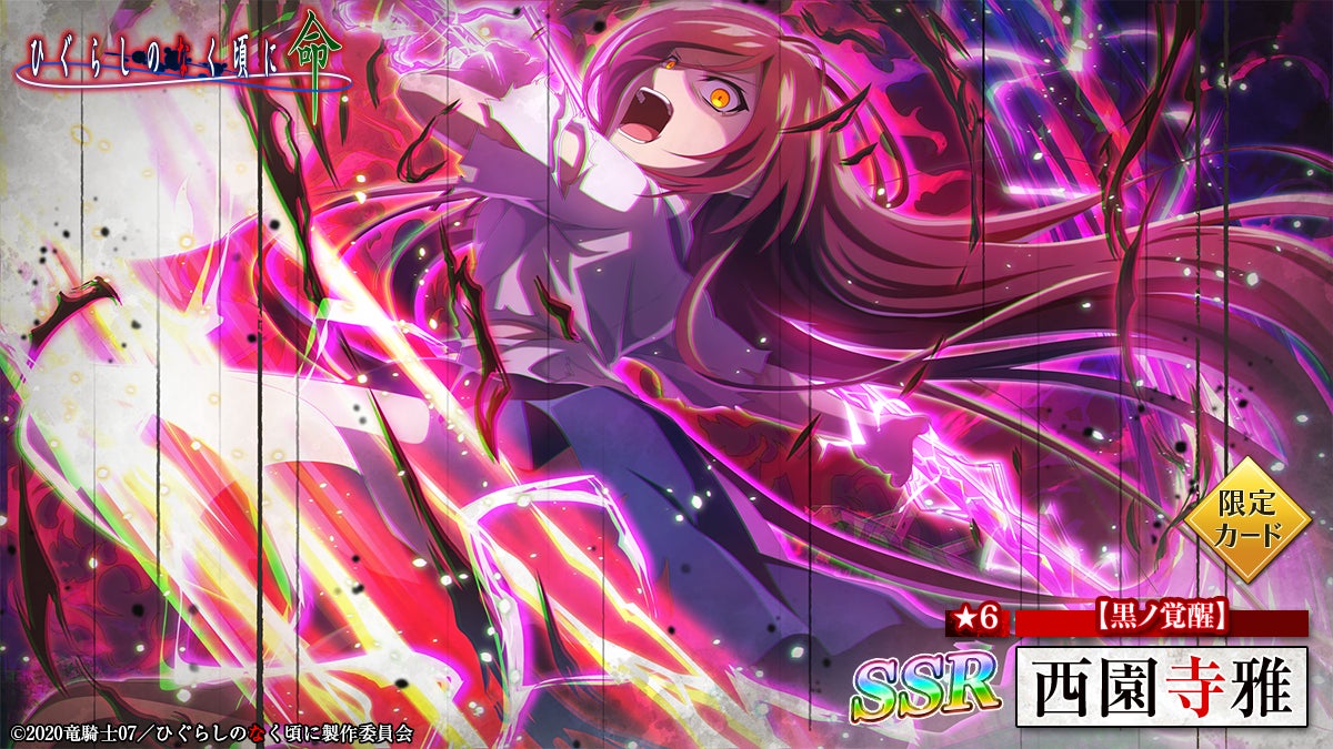 スマートフォンゲーム「ひぐらしのなく頃に 命」にて【黒ノ覚醒ガチャ】を開催!『【黒ノ覚醒】西園寺雅』『【黒ノ覚醒】北条鉄平』が初登場!!