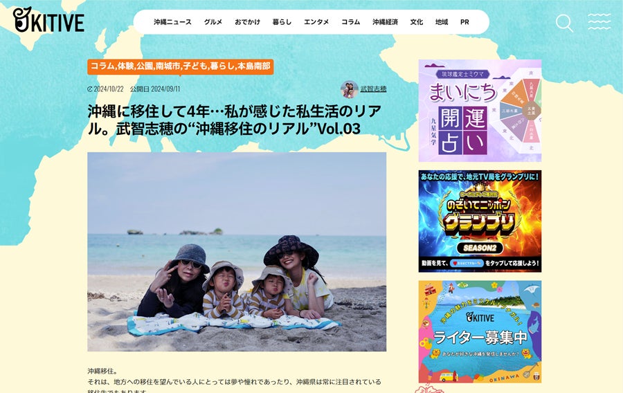 沖縄に移住して4年…私が感じた私生活のリアル。武智志穂の“沖縄移住のリアル”Vol.03:https://www.otv.co.jp/okitive/article/66998/