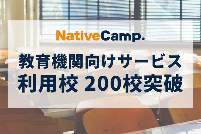 オンライン英会話アプリ「ネイティブキャンプ英会話」を展開する株式会社ネイティブキャンプ(東京都渋谷区 代表取締役:谷川国洋)は2023年1月6日(金)、教育機関向け英会話サービス利用校が200校を突破したことをお知らせいたします。