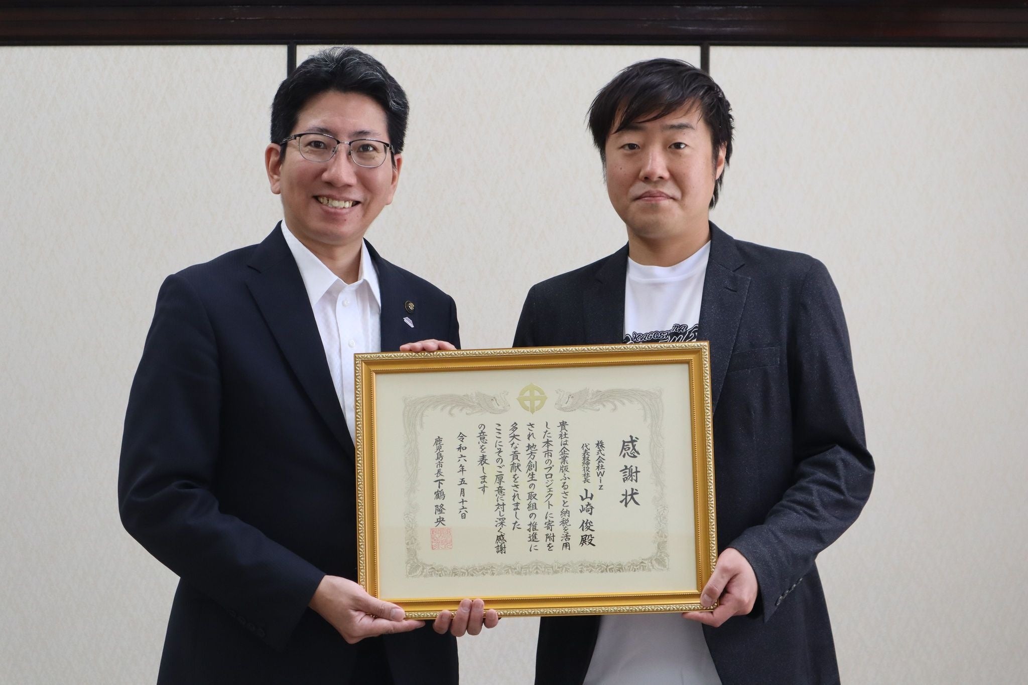 【株式会社Wiz】鹿児島市へ企業版ふるさと納税を活用した寄附を実施し、感謝状を授与
