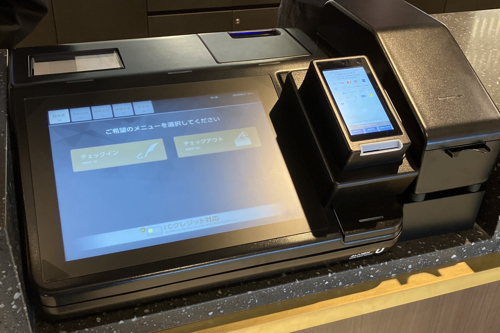 宿泊施設向けに提供しているセルフチェックインシステムで、チェックイン手続き、精算、ルームカードキー発行までワンストップで対応可能です。テーブルトップ型、スタンド型、家具組込型があり、今回導入したテーブルトップ型は、キャッシュレス専用端末でフロントカウンターに設置することが可能です。省スペースサイズなため、洗練されたロビー・フロントに違和感なく調和しやすい設計となっています。