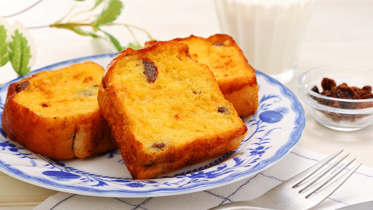 レーズンがアクセントになっているレーズン入りフレンチトーストです。食べやすいサイズの3個入りです。おやつにも軽食にもぴったりです!