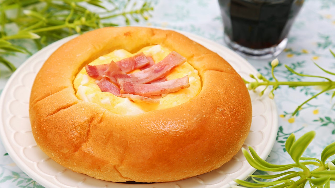 ふんわりとしたパンにたまごサラダを絞り、ハムをトッピングしました。定番人気の味わいです。