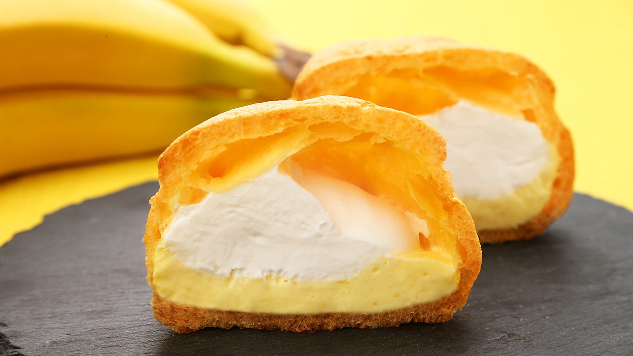 バナナクリームとホイップクリームを合わせたツインシューの季節限定商品です。バナナクリームの風味が夏にぴったりです。