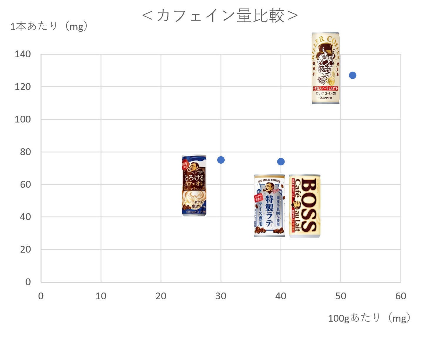 ※3 サントリー既存ミルク入り缶コーヒー飲料規格内で、100gあたりカフェイン含有量No.1