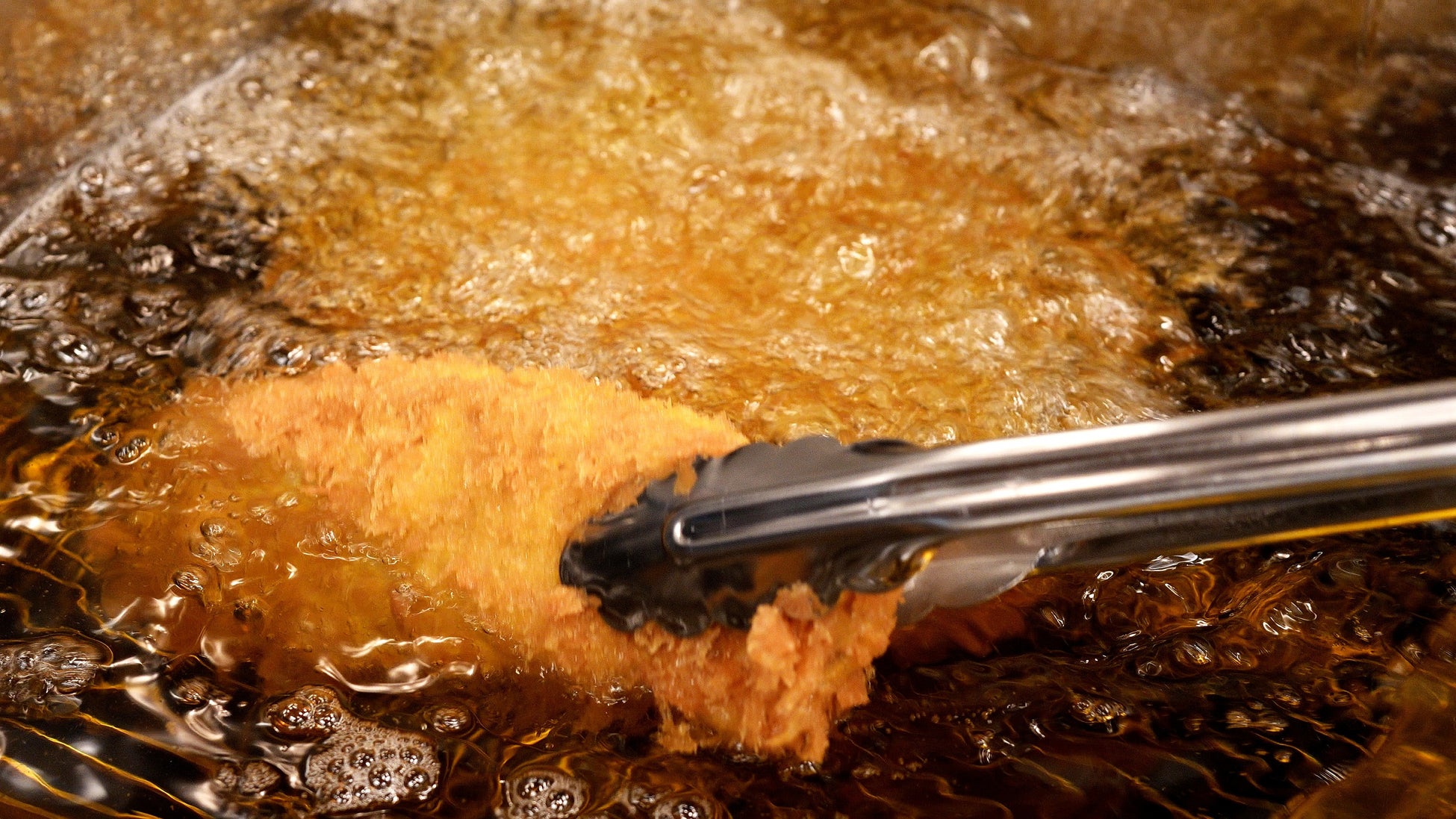 とんかつに適した上質なラードをメインに使用したオリジナルブレンドで、とんかつの旨味を最大限に引立て、食べた後も後悔させないくらい後味がスッキリしています。串カツ田中のノウハウを最大限に発揮した油です。