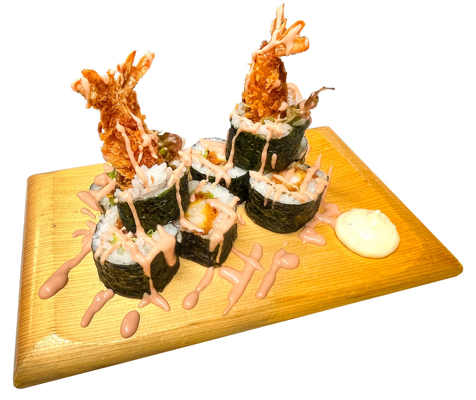えびフライを垂直落下式に手巻き寿司の上に落としました。特製