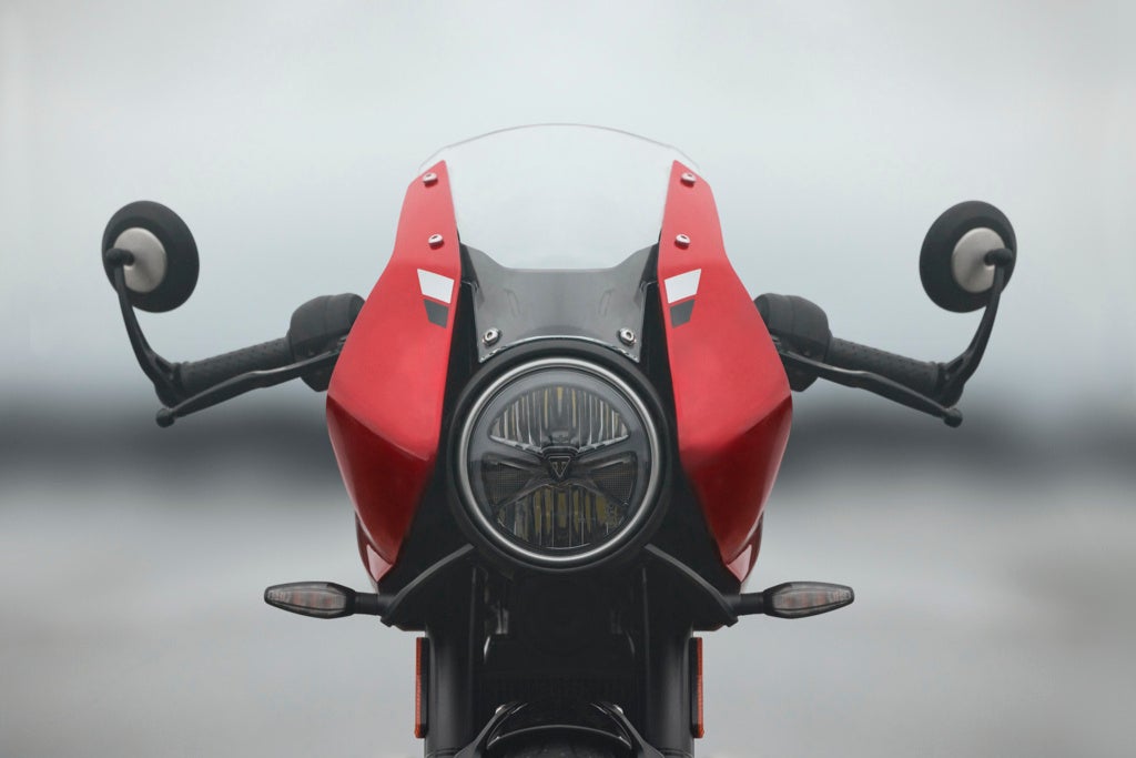 クラシックなトライアンフのエンジンプロファイルに、流麗なラインとシャープな現代的造形を融合させたスカルプトデザインのフューエルタンクを組み合わせ、トライアンフのトライアングルバッジがその存在感を際立たせます。
