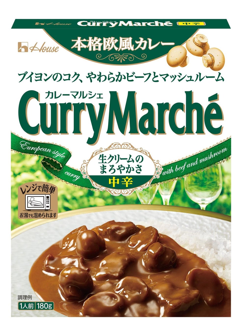 ※「カレーマルシェ」は、やわらかなビーフと、たっぷりのマッシュルームが入った、ブイヨンのコクや生クリームのまろやかな味わいが特徴のレトルトカレーです。