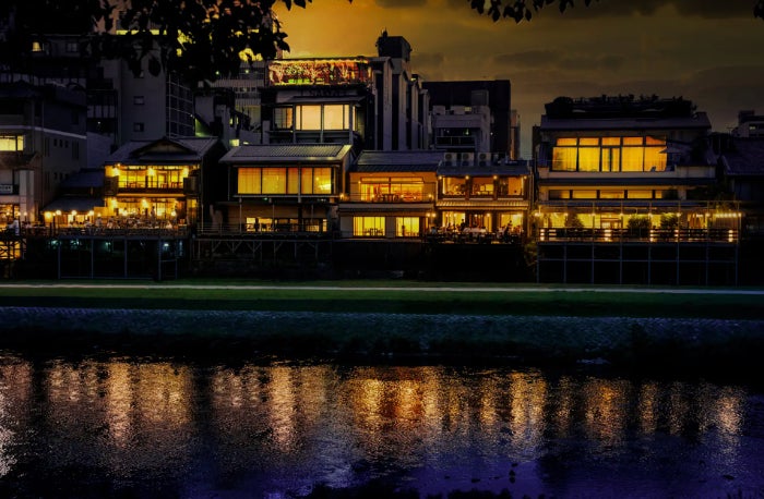 三条大橋からほど近くの鴨川沿いに佇む京都三条 箔。