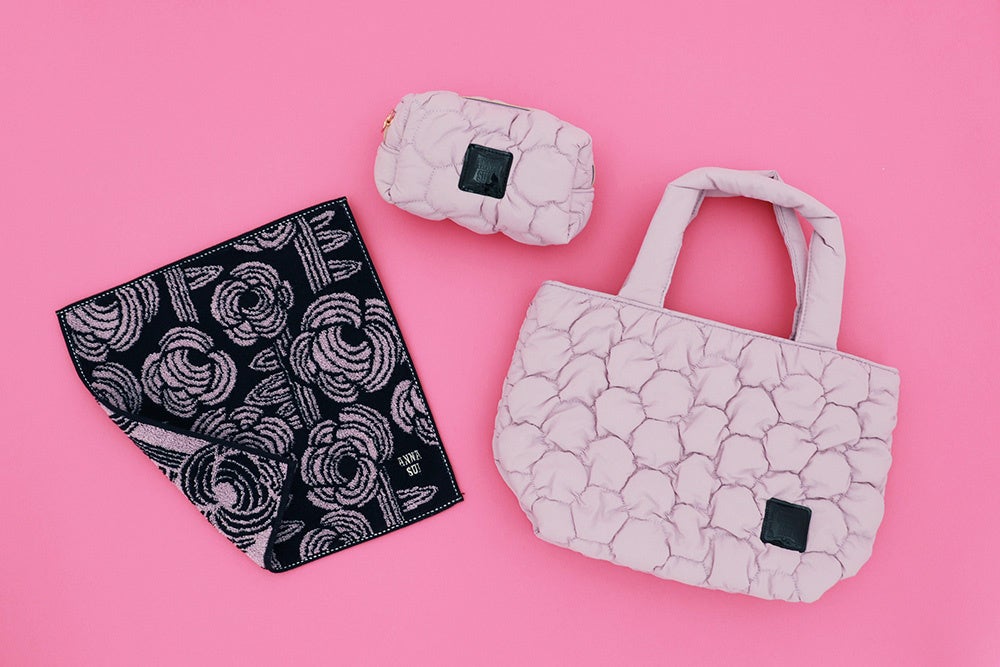 2026年春夏は立体感のあるキルティング素材に注目。軽やかで表情豊かな質感を活かし、シーズンレスで使えるシリーズとして「Bubbles(バブルス)」を企画しました。泡を思わせるモコモコとしたキルティングが印象的な本シリーズは、薄手のナイロン生地と綿を組み合わることで、ふんわりと軽やかなエアリー感を表現。見た目のボリューム感に反して、持ち運びやすい軽さも魅力です。裏地には、ANNA SUIのコレクションのアーカイブ柄から、大胆なローズが目を惹く「RIBBED ROSES」をセレクト。バッグを開いた瞬間に広がる華やかな世界観も、ANNA SUIならではのこだわりです。また、同柄を使用したタオルハンカチもあわせて展開いたします。デザイン性と実用性を兼ね備え、使うたびに心地よさを感じられる「Bubbles(バブルス)」シリーズ。日常使いはもちろん、コーディネートのアクセントとしても活躍する、毎日使いたくなるアイテムです。
