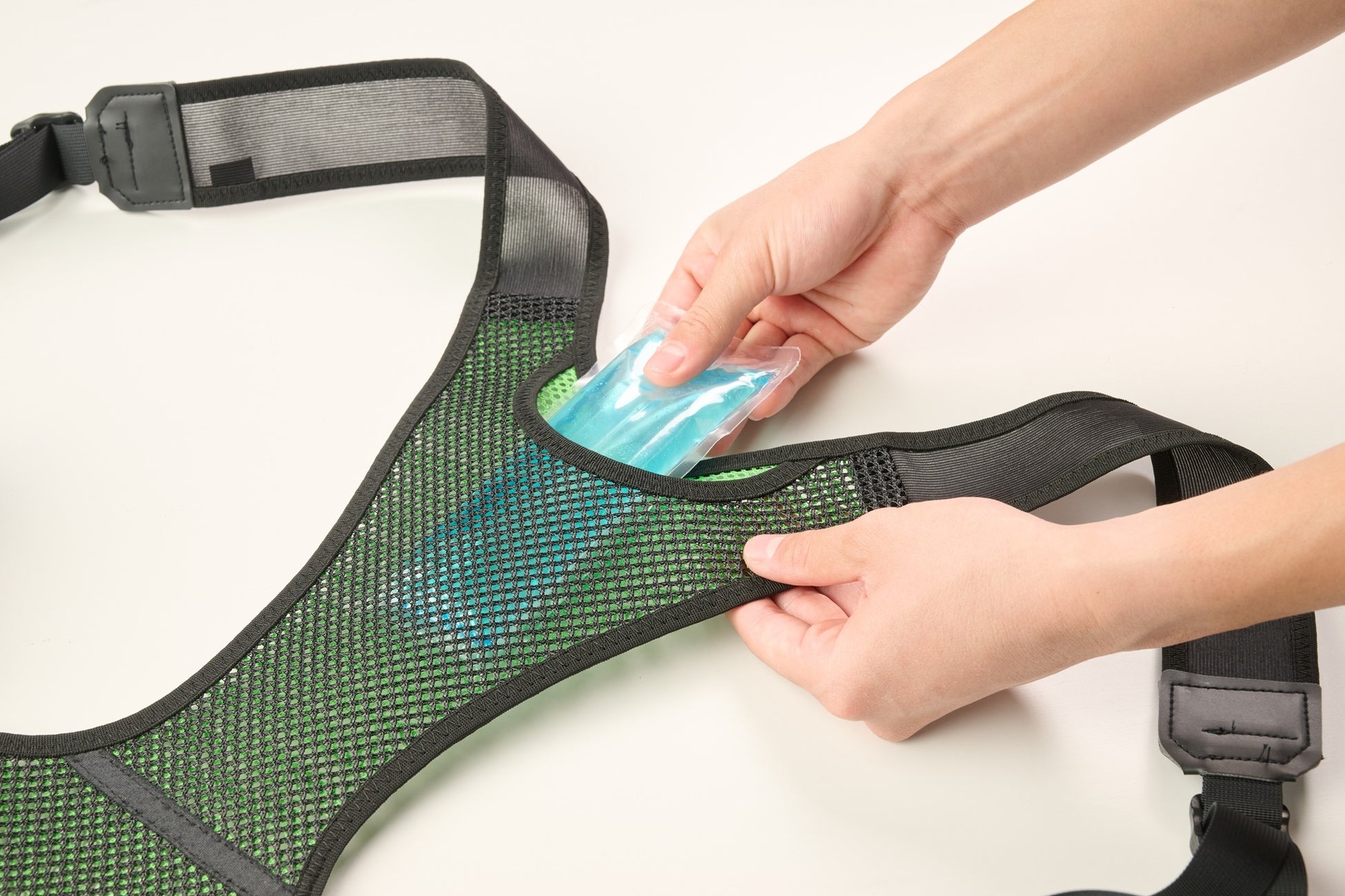 特徴:上腕アシスト機能、保冷剤ポケット、軽量設計、簡単装着