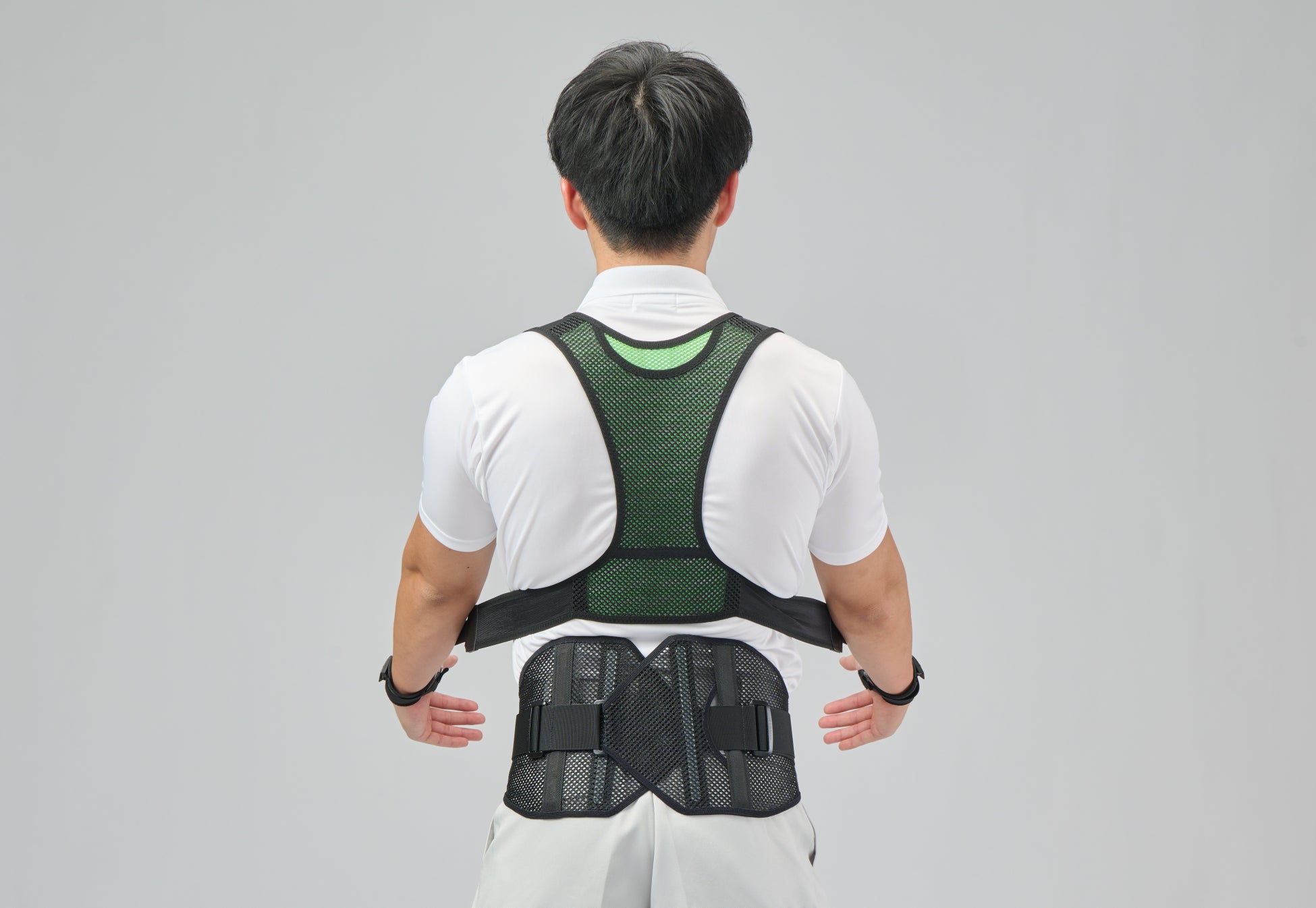 従来の一体型から、腕と腰のアシストを切り分けた構造に見直しました。腰のサポートが必要な場合は、建設・物流業界で長年の導入実績を誇る当社のロングセラー「bonbone メッシュアクションギア クラシック」との併用を推奨しています。作業内容や体調に合わせ、「腕のみ」「腕+腰」を自由に選択できます。