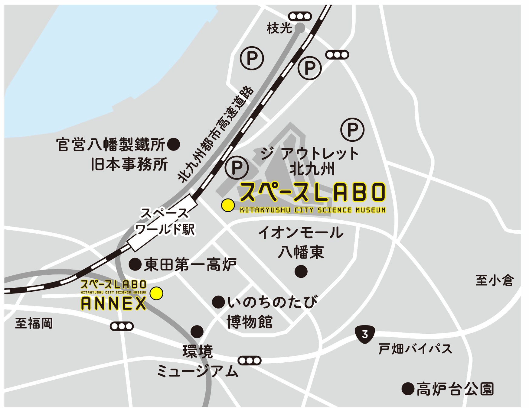 【メイン会場】スペースLABO ANNEX(分館) 北九州市八幡東区東田2-2-11 ※JRスペースワールド駅下車、徒歩約5分 【サブ会場】 スペースLABO(本館) 北九州市八幡東区東田4-1-1 ジ アウトレット北九州内 ※JRスペースワールド駅下車、徒歩約3分 |