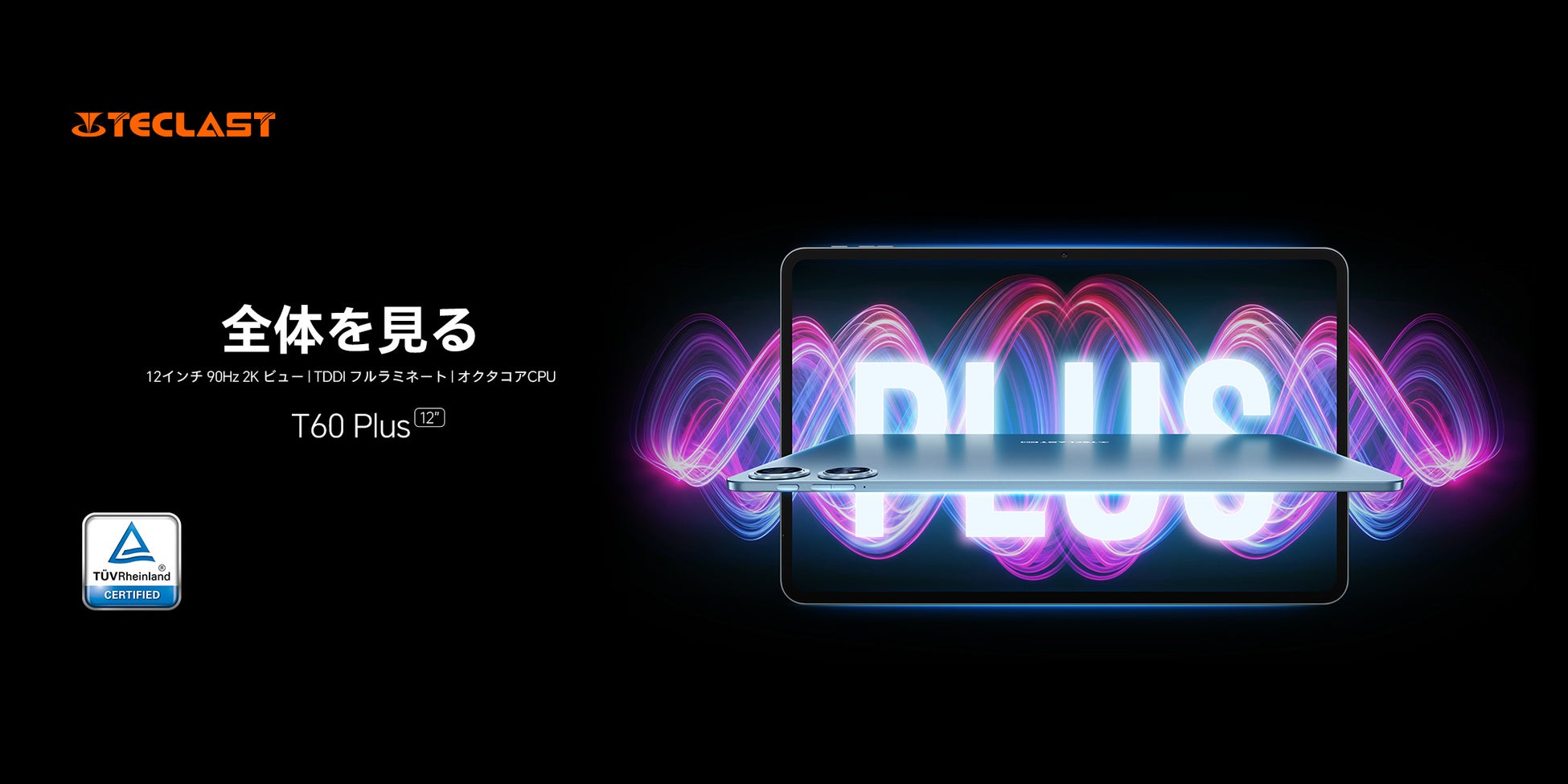 Teclast T60 Plusは、12インチ2K IPSディスプレイを搭載し、10.1インチモデルより40%広い表示面積で、より迫力ある映像を提供します。TÜV Rheinland認定のブルーライト低減機能を備え、目の疲れを軽減し、長時間の視聴でも快適さを維持。90Hzの可変リフレッシュレートとT-Colour技術が滑らかで美しい映像を実現し、ゲームや映画鑑賞、仕事にも最適です。さらに、120Hzタッチサンプリングレートとインセルタッチテクノロジーで操作性が向上し、スムーズで直感的なタッチ体験を提供します。