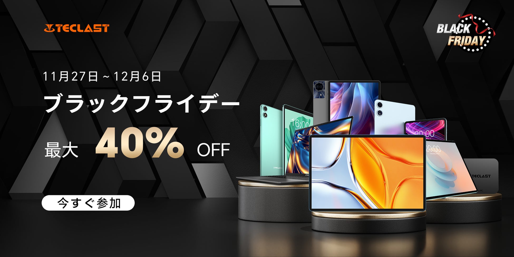 TeclastxAmazonブラックフライデーバーゲンセール開催します。11月27日(水)から12月6日(金)まで、大人気タブレット最大40% OFF可能!ぜひお見逃しなく!