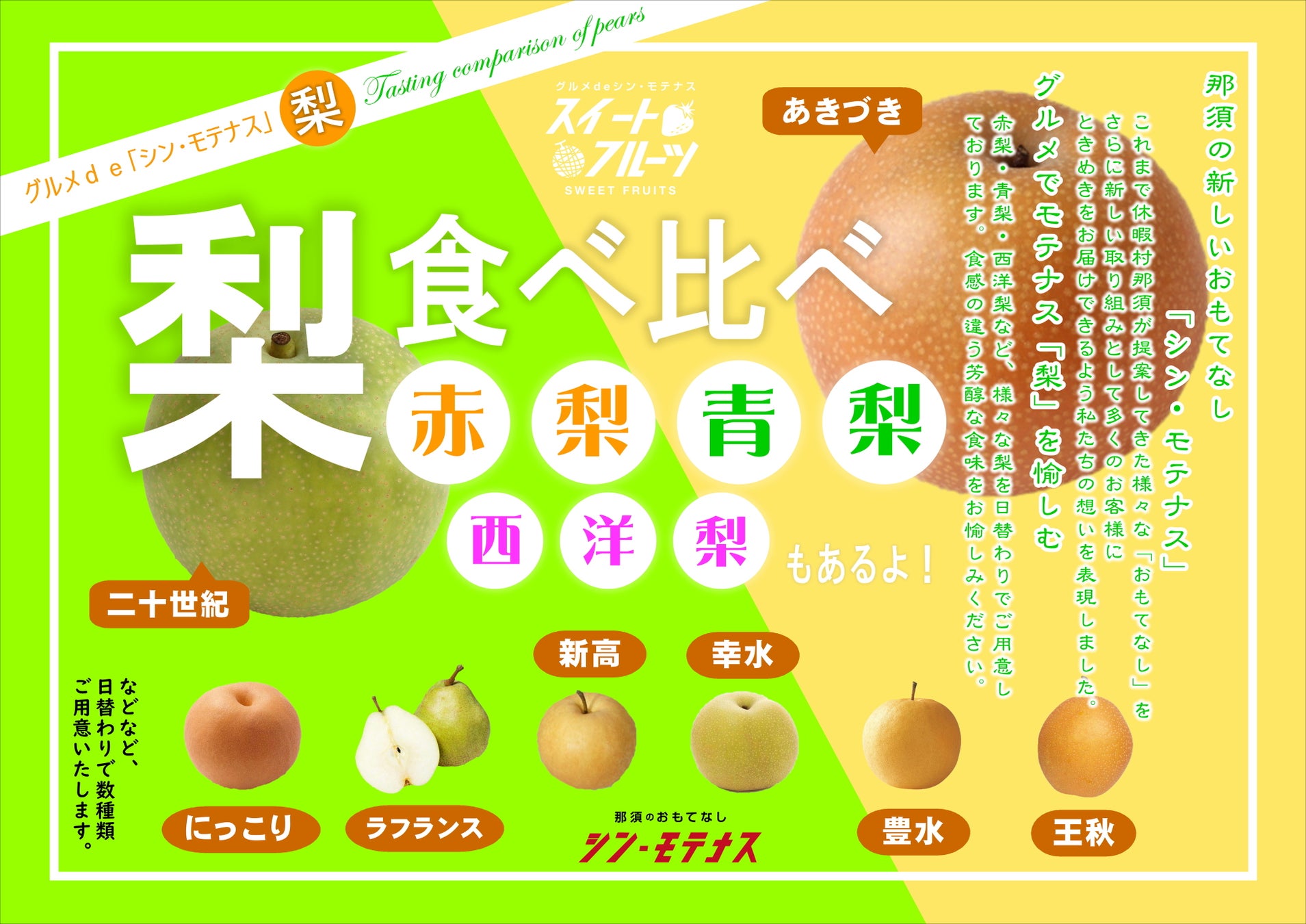 休暇村那須の新しいおもてなし「シン・モテナス」 ジュワッとはじける果汁、一口惚れする梨の食べ比べ 秋の厳選素材を愉しむプレミアムビュッフェ