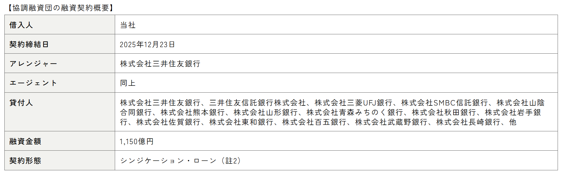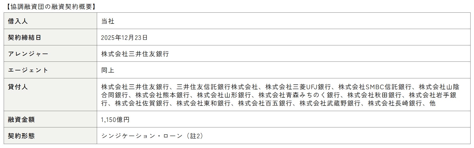 (註2) シンジケーション・ローンとは、複数の金融機関が協調してシンジケート団を組成し、1つの融資契約書に基づき同一条件で融資を行う資金調達手法。